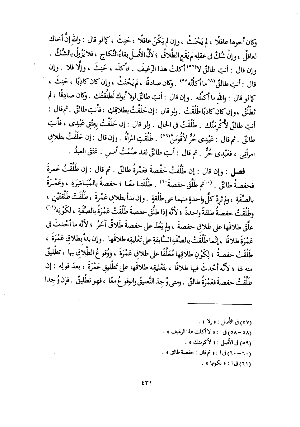 (٦٠) فى أ: "ثم قال: حفصة طالق".