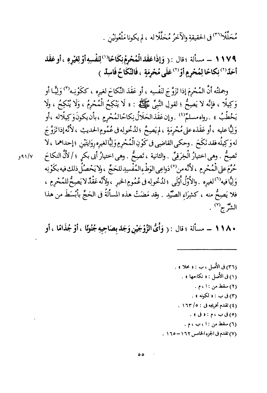 ١١٧٩ - مسألة؛ قال: (وَإِذَا عَقَدَ الْمُحْرِمُ نِكَاحًا (١) لِنَفْسِهِ أَوْ لِغيْرِه، أو عَقَدَ أحَدٌ (٢) نِكاحًا لِمُحْرِمٍ أوْ (٢) عَلَى مُحْرِمَةٍ، فَالنِّكَاحُ فَاسِدٌ)