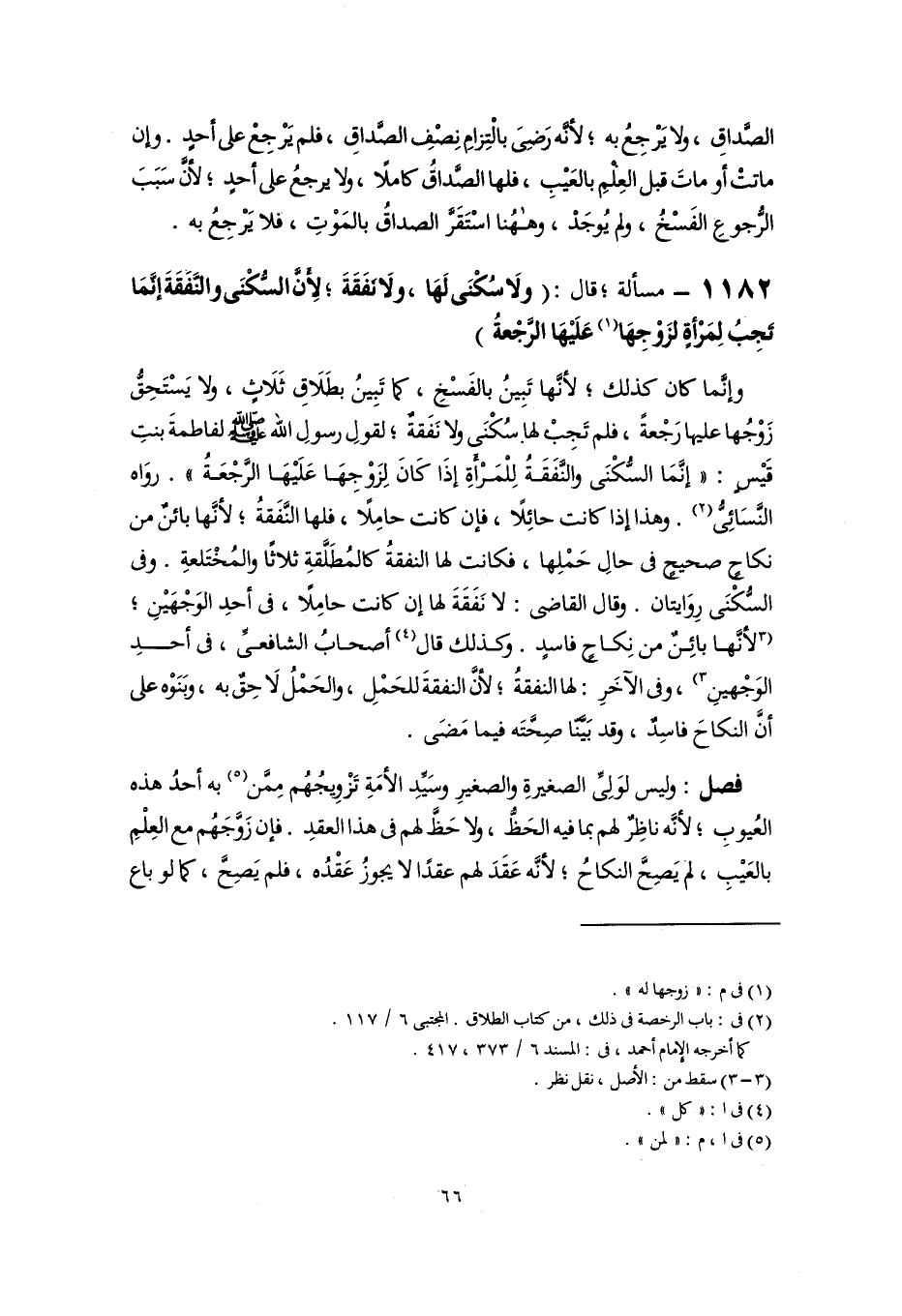 وإنَّما كان كذلك؛ لأنَّها تَبِينُ بالفَسْخِ، كما تَبِينُ بطَلَاقِ ثَلَاثٍ، ولا يَسْتَحِقُّ زَوْجُها عليها رَجْعةً، فلم تَجِبْ لها سُكْنَى ولا نَفَقةٌ؛ لقولِ رسولِ اللَّه -صلى اللَّه عليه وسلم- لفاطمةَ بنتِ قَيْسٍ: "إنَّمَا السُّكْنَى والنَّفَقَةُ لِلْمَرْأَةِ إذَا كَانَ لِزَوْجِهَا عَلَيْهَا الرَّجْعَةُ". روَاه النَّسَائِىُّ (٢). وهذا إذا كانت حائِلًا، فإن كانت حامِلًا، فلها النَّفَقةُ؛ لأنَّها بائنٌ من نكاحٍ صحيحٍ فى حالِ حَمْلِها، فكانت لها النفقةُ كالمُطَلَّقةِ ثلاثًا والمُخْتَلعةِ. وفى السُّكْنَى رِوَايتان. وقال القاضى: لا نَفَقَةَ لها إن كانت حامِلًا، فى أحدِ الوَجْهَيْنِ؛ [لأنَّها بائِنٌ من نِكاحٍ فاسدٍ. وكذلك قال (٣) أصحابُ الشافعىِّ، فى أحدِ الوَجْهينِ] (٤)، وفى الآخَرِ: لها النفقةُ؛ لأنَّ النفقةَ للحَمْلِ، والحَمْلُ لَاحِقٌ به، وبَنَوْه على أَنَّ النِّكاحَ فاسِدٌ، وقد بَيَّنّا صِحَّتَه فيما مَضَى.