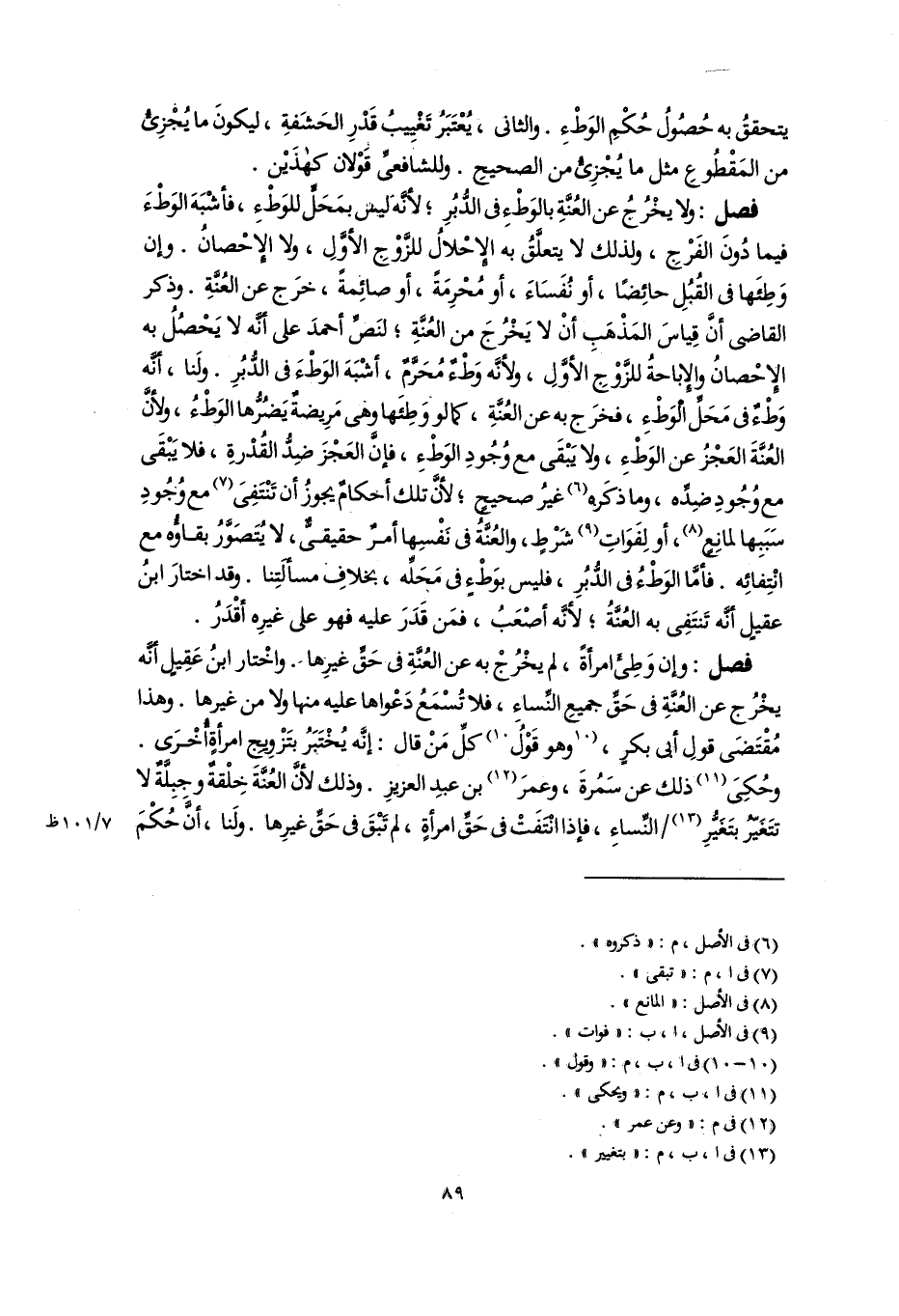 فصل: وإن وَطِئَ امرأةً، لم يخْرُجْ به عن العُنَّةِ فى حَقِّ غيرِها. واخْتار ابنُ عَقِيلٍ أنَّه يخْرُج عن العُنَّةِ فى حَقِّ جميعِ النِّساءِ، فلا تُسْمَعُ دَعْواهما عليه منها ولا من غيرها. وهذا مُقْتَضَى قولِ أبى بكرٍ، [وهو قَوْلُ] (١٠) كلِّ مَنْ قال: إنَّه يُخْتَبَرُ بتَزْوِيِج امرأةٍ أُخْرَى. وحُكِىَ (١١) ذلك عن سَمُرةَ، وعمرَ (١٢) بن عبدِ العزيزِ. وذلك لأنَّ العُنَّةَ خِلْقةٌ وجبِلَّةٌ لا تتَغَيّرُ بتَغَيُّرِ (١٣) النِّساءِ، فإذا انتفَتْ فى حَقِّ امرأةٍ، لم تَبْقَ فى حَقِّ غيرِها. ولَنا، أَنَّ حُكْمَ