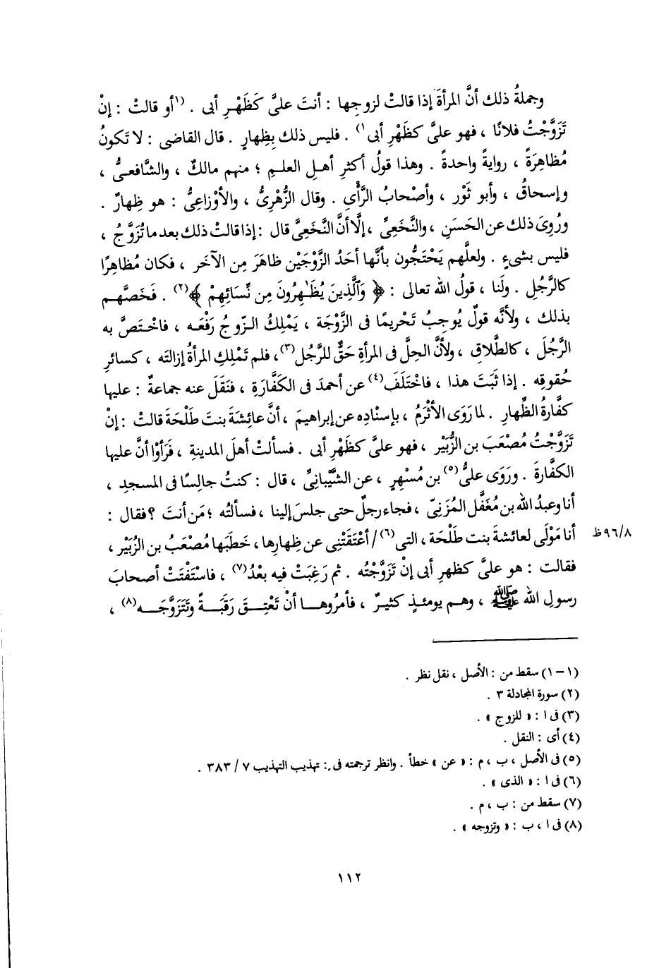 وجملةُ ذلك أن المرأةَ إذا قالتْ لزوجِها: أنتَ علىَّ كَظَهْرِ أبى. [أو قالتْ: إنْ تَزَوَّجْتُ فلانًا، فهو علىَّ كظَهْرِ أبى] (١). فليس ذلك بِظِهارٍ. قال القاضى: لا تَكونُ مُظاهَرةً، روايةً واحدةً. وهذا قولُ أكثرِ أهلِ العلمِ؛ منهم مالكٌ، والشَّافعىُّ، وإسحاقُ، وأبو ثَوْر، وأصْحابُ الرَّأْىِ. وقال الزُّهْرِىُّ، والأوْزاعِىُّ: هو ظِهارٌ. ورُوِىَ ذلك عن الحَسَنِ، والنَّخَعِىِّ، إلَّا أن النَّخَعِىَّ قال: إذا قالتْ ذلك بعدما تُزَوَّجُ، فليس بشىءٍ. ولعلَّهم يَحْتَجُّون بأنَّها أحَدُ الزَوْجَيْن ظاهَرَ مِن الآخَر، فكان مُظاهِرًا كالرَّجُلِ. ولَنا، قولُ اللَّه تعالى: {وَالَّذِينَ يُظَاهِرُونَ مِنْ نِسَائِهِمْ} (٢). فَخَصَّهم بذلك، ولأنَّه قولٌ يُوجِبُ تَحْريمًا فى الزَّوْجَة، يَمْلِكُ الزّوجُ رَفْعَه، فاخْتَصَّ به الرَّجُلَ، كالطَّلاقِ، ولأنَّ الحِلَّ فى المرأةِ حَقٌّ للرَّجُل (٣)، فلم تَمْلِكِ المرأةُ إزالتَه، كسائرِ حُقوقِه. إذا ثَبَتَ هذا، فاخْتَلَفَ (٤) عن أحمدَ فى الكَفَّارَةِ، فنَقَلَ عنه جماعةٌ: عليها كفَّارةُ الظِّهارِ. لما رَوَى الأثْرَمُ، بإسنْادِه عن إبراهيمَ، أَنَّ عائِشَةَ بنتَ طَلْحَةَ قالتْ: إنْ تَزَوجْتُ مُصْعَبَ بن الزُّبَيْر، فهو علىَّ كظَهْرِ أبى. فسألتْ أهلَ المدينةِ، فَرَأوْا أَنَّ عليها الكفَّارةَ. ورَوَى علىُّ (٥) بن مُسْهِرٍ، عن الشَّيْبانِىِّ، قال: كنتُ جالِسًا فى المسجدِ، أنا وعبدُ اللَّه بن مُغَفل المُزَنِىّ، فجاء رجلٌ حتى جلسَ إلينا، فسألتُه؛ مَن أنتَ؟ فقال: أنا مَوْلَى لعائشةَ بنت طَلْحَة، التى (٦) أعْتَقَتْنِى عن ظِهارِها، خَطَبَها مُصْعَبُ بن الزُبَيْر، فقالت: هو علىَّ كظهرِ أبى إنْ تَزَوَّجْتُه. ثم رَغِبَتْ فيه بعْدُ (٧)، فاسْتَفْتَتْ أصحابَ رسولِ اللَّه -صلى اللَّه عليه وسلم-، وهم يومئذٍ كثيرٌ، فأمرُوها أَنْ تَعْتِقَ رَقَبَةً وتَتَزَوَّجَه (٨)،