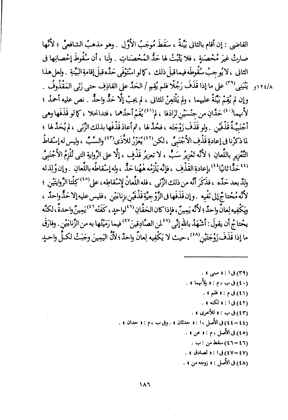 القاضى: إن أقام بالثانى بَيِّنَةً، سَقَطَ مُوجَبُ الأوَّلِ. وهو مذهبُ الشافعىِّ؛ لأنَّها صارتْ غيرَ مُحْصَنةٍ، فلا يَثْبُتُ لها حَدُّ المُحْصَناتِ. ولَنا، أن سُقُوطَ إحْصانِها فى الثانى، لا يُوجِبُ سُقُوطَه فيما قبلَ ذلك، كما لو اسْتَوْفَى حَدَّه قبلَ إقامةِ البَيِّنةِ. ولعل هذا يَنْبَنِى (٣٩) على ما إذا قَذَفَ رَجُلًا فلم يُقِمِ الحَدَّ على القاذِفِ حتى زَنَى المَقْذُوفُ. وإن لم يُقِمْ بَيِّنَةً عليهما، ولم يَلْتَعِنْ للثانى، لم يجبْ إلَّا حَدٌّ واحدٌّ. نص عليه أحمدُ؛ لأنهما (٤٠) حَدَّانِ من جِنْسَيْنِ تَرَادَفا، لم (٤١) يُقَمْ أحدُهما، فتداخَلا، كما لو قَذَفَها وهى أجْنَبِيَّةٌ قَذْفَيْنِ. ولو قَذَفَ زَوْجَتَه، فحُدَّ لها، ثم أعادَ قَذْفَها بذلك الزِّنَى، لم يُحَدَّ لها؛ لما ذكرْنا فى إعادةِ قَذْفِ الأجْنَبِىِّ، لكن (٤٢) يُعَزّرُ للأَذَى (٤٣) والسَّبِّ، وليس له إسْقاطُ التَّعْزِيرِ باللِّعانِ؛ لأنَّه تَعْزِيرُ سَبٍّ، لا تعزيرُ قَذْفٍ، إلَّا على الرِّوايةِ التى تُلْزِمُ الأجْنَبِىَّ [حَدٌّ ثانيًا] (٤٤) بإعادةِ القَذْفِ، فإنَّه يَلْزَمُه ههُنا حَدٌّ، وله إسْقاطُه باللَّعانِ. وإن وُلِدَ له ولدٌ بعد حَدِّه، فذَكَرَ أنَّه من ذلك الزِّنَى، فله اللَّعانُ لإسْقاطِه، على (٤٥) كِلْتا الرِّوايتَيْنِ؛ لأنَّه مُحْتاجٌ إلى نَفْيِه. وإن قَذَفَها فى الزَّوْجِيَّةِ قَذْفَيْنِ بزِناءَيْنِ، فليس عليه إلا حَدٌّ واحدٌ، ويَكْفِيه لِعانٌ واحدٌ؛ لأنَّه يَمِينٌ، فإذا كان الحَقَّانِ [لواحدٍ، كَفَتْه] (٤٦) يَمِينٌ واحدةٌ، لكنَّه يحْتاجُ أن يقولَ: أشْهَدُ باللَّهِ إنِّى [لمن الصَّادِقينَ] (٤٧) فيما رَمَيْتُها به من الزِّناءَيْنِ. وفارَقَ ما إذا قَذَفَ زَوْجَتَيْنِ (٤٨)، حيث لا يَكْفِيه لِعانٌ واحدٌ؛ لأنَّ اليَمِينَ وجَبَتْ لكلِّ واحدٍ