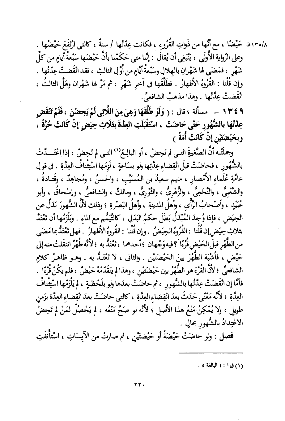 وجملَتُه أنَّ الصَّغيرةَ التى لم تَحِضْ، أو البالِغَ (١) التى لم تَحِضْ، إذا اعْتَدَّتْ بالشُّهُورِ، فحاضَتْ قبلَ انْقِضاءِ عِدَّتِها ولو بسَاعةٍ، لَزِمَها اسْتِئْنافُ العِدَّةِ. فى قولِ عامَّةِ عُلَماءِ الأمْصارِ، منهم سعيدُ بن المُسَيَّبِ، والحسنُ، ومُجاهِدٌ، وقَتادةُ، والشَّعْبِىُّ، والنَّخَعِىُّ، والزُّهْرِىُّ، والثَّوْرِىُّ، ومالكٌ، والشافعىُّ، وإسْحاقُ، وأبو عُبَيْدٍ، وأصْحابُ الرَّأْىِ، وأهلُ المدينةِ، وأهلُ البَصْرةِ؛ وذلك لأنَّ الشُّهورَ بَدَلٌ عن الحِيَضِ، فإذا وُجِدَ المُبْدَلُ بَطَلَ حكمُ البَدَلِ، كالتَّيَمُّمِ مع الماءِ. ويَلْزَمُها أن تَعْتَدَّ بثلاثِ حِيَضٍ إن قُلْنا: القُرُوءُ الحِيَضُ. وإن قُلْنا: القُروءُ الأطهارُ. فهل تَعْتَدُّ بما مَضَى من الطُّهْرِ قبلَ الحَيْضِ قُرْءًا؟ فيه وَجْهان؛ أحدهما، تَعْتَدُّ به؛ لأنَّه طُهْرٌ انتقَلتْ منه إلى حَيْضٍ، فأشْبَهَ الطُّهْرَ بينَ الحَيْضَتيْن. والثاني، لا تَعْتَدُّ به. وهو ظاهرُ كلامِ الشافعىِّ؛ لأنَّ القُرْءَ هو الطُّهْرُ بين حَيْضَتيْنِ، وهذا لم يتَقَدّمْهُ حَيْضٌ، فلم يكُنْ قُرْءًا. فأمَّا إن انْقَضَتْ عِدَّتُها بالشُّهورِ، ثم حاضَتْ بعدَها ولو بلَحْظةٍ، لم يَلْزَمْها اسْتِئْنافُ العِدَّةِ؛ لأنَّه مَعْنًى حَدَثَ بعدَ انْقِضاءِ العِدَّةِ، كالتى حاضَتْ بعدَ انْقِضاءِ العِدَّة بزَمنٍ طويلٍ، ولا يُمْكِنُ مَنْعُ هذا الأصلِ؛ لأنَّه لو صَحَّ مَنْعُه، لم يَحْصُلْ لمَنْ لم تَحِضْ الاعْتِدادُ بالشُّهورِ بحالٍ.