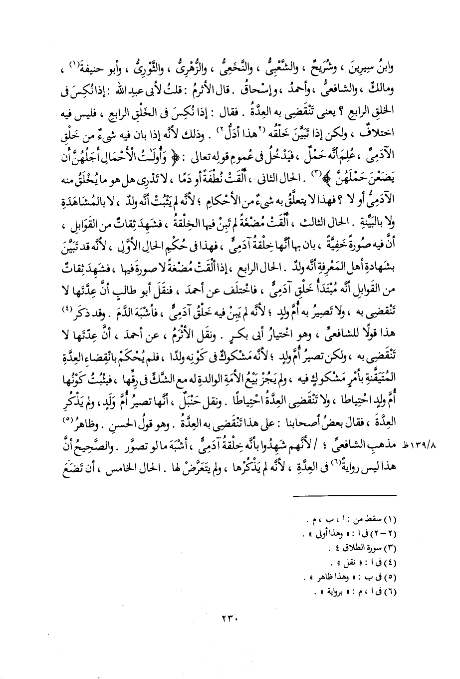 وابنُ سِيرِينَ، وشُرَيحٌ، والشَّعْبِىُّ، والنَّخَعِىُّ، والزُّهْرِىُّ، والثَّوْرِىُّ، وأبو حنيفةَ (١)، ومالكٌ، والشافعىُّ، وأحمدُ، وإسْحاقُ. قال الأثرمُ: قلتُ لأبى عبدِ اللَّه: إذا نُكِسَ فى الخلقِ الرابعِ؟ يعنى تَنْقَضِى به العِدَّةُ. فقال: إذا نُكِسَ فى الخَلْقِ الرابعِ، فليس فيه اختلافٌ، ولكن إذا تَبَيَّنَ خَلْقُه [هذا أدَلُّ] (٢). وذلك لأنَّه إذا بان فيه شىءٌ من خَلْقِ الآدَمِىِّ، عُلِمَ أَنَّه حَمْلٌ، فيَدْخُلُ فى عُمومِ قولِه تعالى: {وَأُولَاتُ الْأَحْمَالِ أَجَلُهُنَّ أَنْ يَضَعْنَ حَمْلَهُنَّ} (٣). الحال الثانى، أَلْقَتْ نُطْفَةً أو دَمًا، لا تَدْرِى هل هو ما يُخْلَقُ منه الآدَمِيُّ أو لا؟ فهذا لا يتعلَّقُ به شىءٌ من الأحْكامِ؛ لأنَّه لم يَثْبُتْ أنَّه ولدٌ، لا بالمُشَاهَدَةِ ولا بالبَيِّنةِ. الحال الثالث، أَلْقَتْ مُضْغَةً لم تَبِنْ فيها الخِلْقةُ، فشَهِدَ ثِقاتٌ من القَوَابلِ، أنَّ فيه صُورةً خَفِيَّةً، بان بها أنَّها خِلْقةُ آدَمِىٍّ، فهذا فى حُكْمِ الحالِ الأوَّلِ، لأنَّه قد تَبَيَّنَ بشَهادَةِ أهل المَعْرِفةِ أنَّه ولدٌ. الحال الرابع، إذا أَلْقَتْ مُضْغةً لا صورةَ فيها، فشَهِدَ ثِقاتٌ من القَوابلِ أنَّه مُبْتَدَأُ خَلْقِ آدَمِىٍّ، فاخْتلَف عن أحمدَ، فنقَلَ أبو طالبٍ أنَّ عِدَّتَها لا تَنْقضِى به، ولا تَصِيرُ به أُمَّ ولدٍ؛ لأنَّه لم يَبِنْ فيه خَلْقُ آدَمِىٍّ، فأشْبَهَ الدَّمَ. وقد ذكَر (٤) هذا قولًا للشافعىِّ، وهو اخْتيارُ أبى بكرٍ. ونقَل الأثْرَمُ، عن أحمدَ، أنَّ عِدّتَها لا تَنْقَضِى به، ولكن تصيرُ أُمَّ ولدٍ؛ لأنَّه مَشْكوكٌ فى كَوْنِه ولدًا، فلم يُحْكَمْ بانْقِضاءِ العِدَّةِ المُتَيَقَّنةِ بأمْرٍ مَشْكوكٍ فيه، ولم يَجُزْ بَيْعُ الأمَةِ الوالدةِ له مع الشَّكِّ فى رِقِّها، فيثْبُتُ كَوْنُها أُمَّ ولدٍ احْتِياطا، ولا تَنْقَضِى العِدَّةُ احْتِياطًا. ونقل حَنْبَلٌ، أنَّها تصيرُ أُمَّ وَلَدٍ، ولم يَذْكُرِ العِدَّةَ، فقال بعضُ أصحابنا: على هذا تَنْقَضِى به العِدَّةُ. وهو قولُ الحسنِ. وظاهرُ (٥) مذهبِ الشافعىِّ؛ لأنَّهم شَهِدُوا بأنَّه خِلْقةُ آدَمِىٍّ، أشْبَهَ ما لو تصوَّر. والصَّحِيحُ أنَّ هذا ليس روايةً (٦) فى العِدَّةِ، لأنَّه لم يَذْكُرْها، ولم يتَعَرَّضْ لها. الحال الخامس، أن تَضَعَ