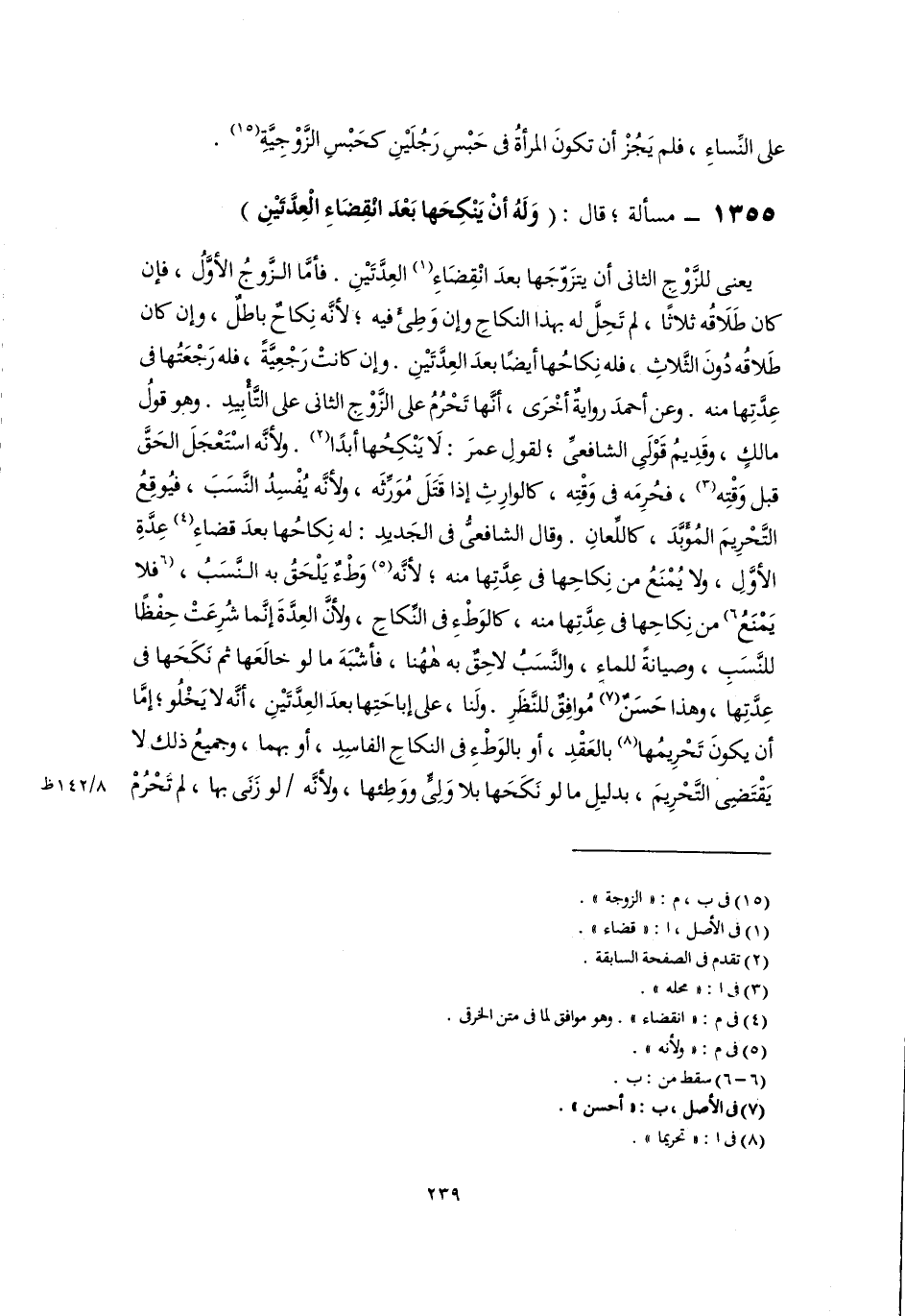 ١٣٥٥ - مسألة؛ قال: (وَلَهُ أنْ يَنْكِحَها بَعْدَ انْقِضَاءِ الْعِدَّتَيْنِ)
