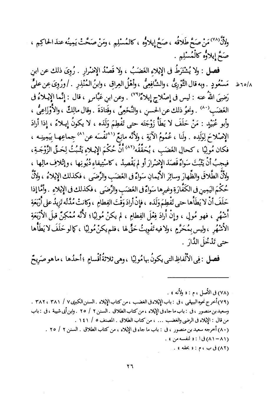 (٨٠) أخرجه سعيد بن منصور، فى: باب ما جاء فى الإِيلاء، من كتاب الطلاق. السنن ٢/ ٢٥.