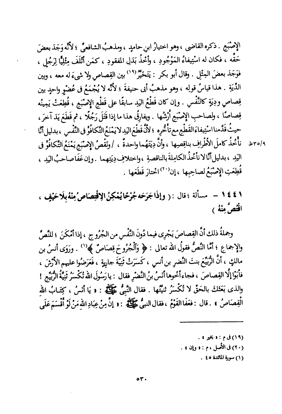 ١٤٤١ - مسألة؛ قال: (وإذَا جَرَحَه جُرْحًا يُمْكِنُ الِاقْتِصَاصُ مِنْهُ بِلَا حَيْفٍ، اقْتُصَّ مِنْهُ)
