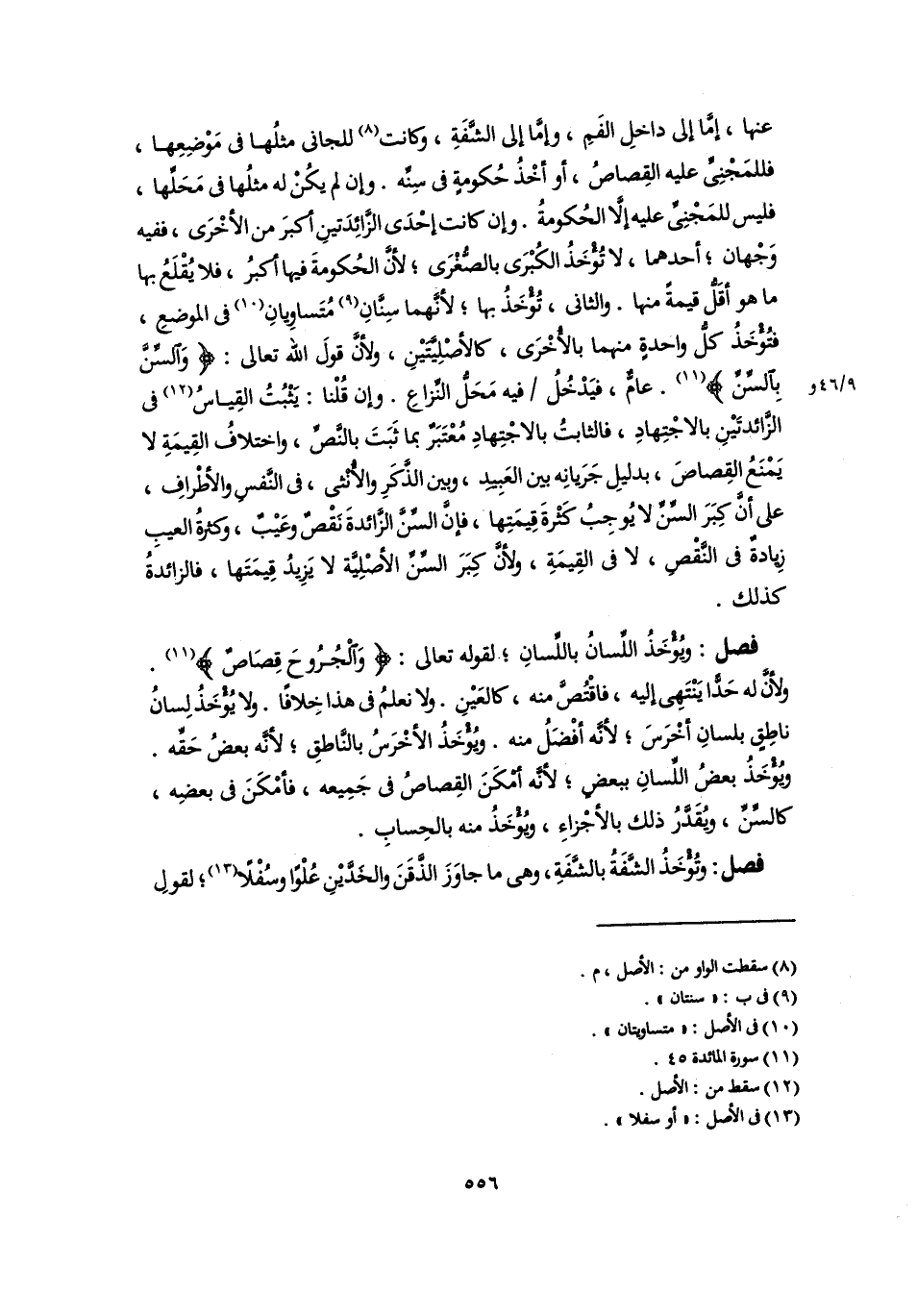 (١١) سورة المائدة ٤٥.