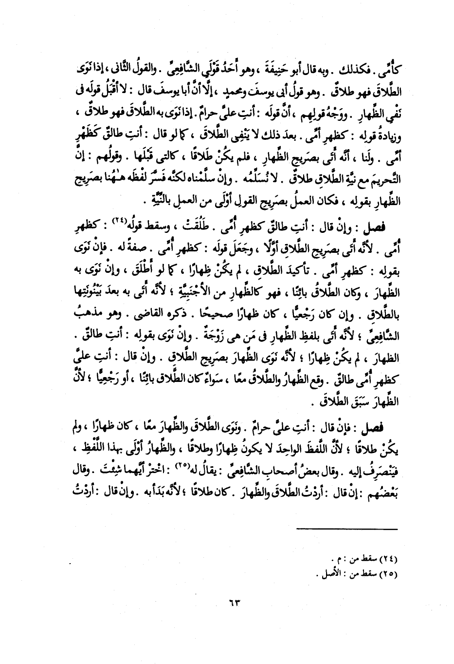فصل: فإنْ قال: أنتِ علىَّ حرامٌ. ونَوَى الطَّلاقَ والظِّهارَ معًا، كان ظهارًا، ولم يكُنْ طلاقًا؛ لأنَّ اللَّفظَ الواحِدَ لا يكونُ ظِهارًا وطلاقًا، والظِّهارُ أوْلَى بهذا اللَّفْظِ، فيَنْصَرِفُ إليه. وقال بعضُ أصحابِ الشَّافِعىِّ: يقالُ له (٢٥): اخْترْ أيَّهما شِئْتَ. وقال بَعْضُهم: إنْ قال: أردْتُ الطَّلاقَ والظِّهارَ. كان طلاقًا؛ لأنَّه بَدَأ به. وإِنْ قال: أردْتُ