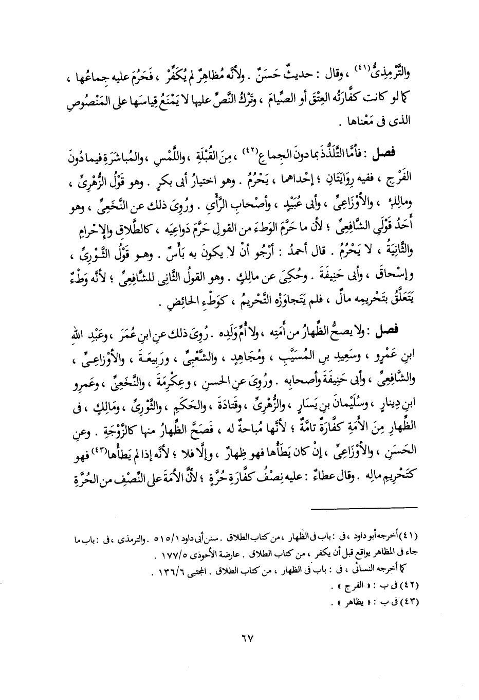 والتِّرْمِذِىُّ (٤١)، وقال: حديثٌ حَسَنٌ. ولأنَّه مُظاهِرٌ لم يُكَفِّرْ، فَحَرُمَ عليه جِماعُها، كما لو كانت كفَّارَتُه العِتْقَ أو الصِّيامَ، وتَرْكُ النَّصِّ عليها لا يَمْنَعُ قِياسَها على المَنْصُوصِ الذى فى مَعْناها.