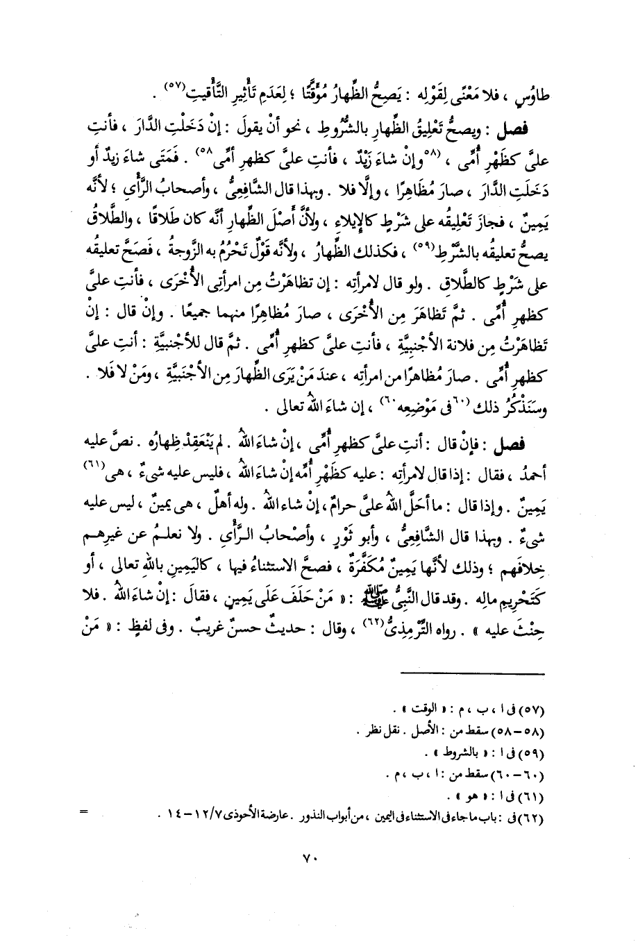 (٦٢) فى: باب ما جاء فى الاستثناء فى اليمين، من أبواب النذور. عارضة الأحوذى ٧/ ١٢ - ١٤. =