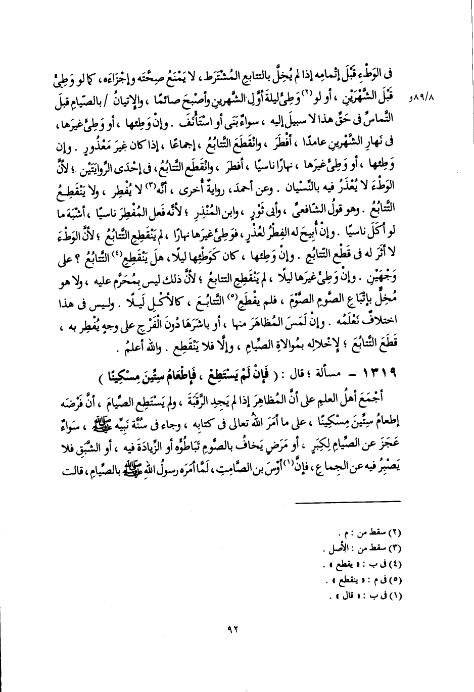 ١٣١٩ - مسألة؛ قال: (فَإِنْ لَمْ يَسْتَطِعْ، فَإِطْعَامُ سِتِّينَ مِسْكينًا)