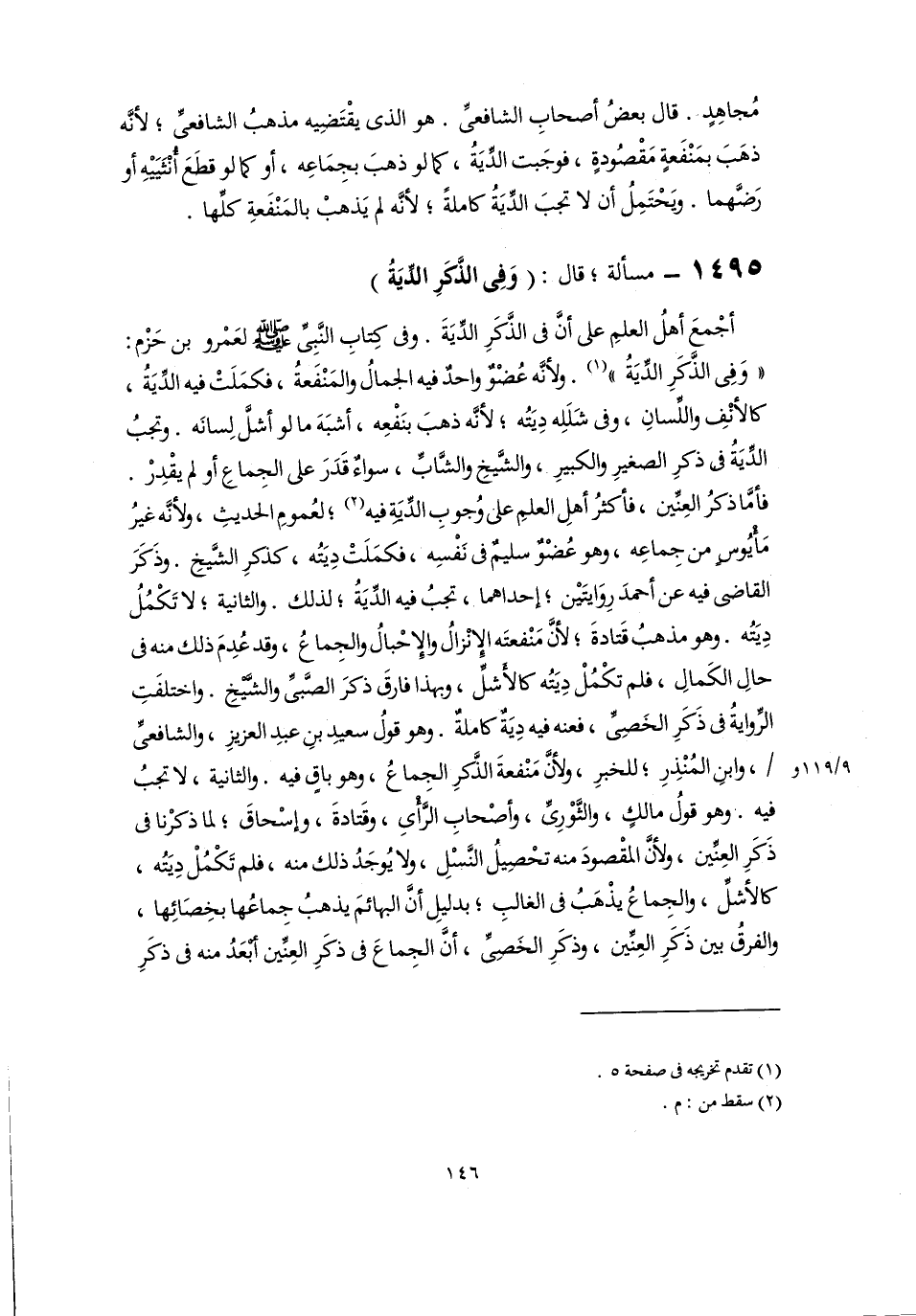 ١٤٩٥ - مسألة؛ قال: (وَفِى الذَّكَرِ الدِّيَةُ)