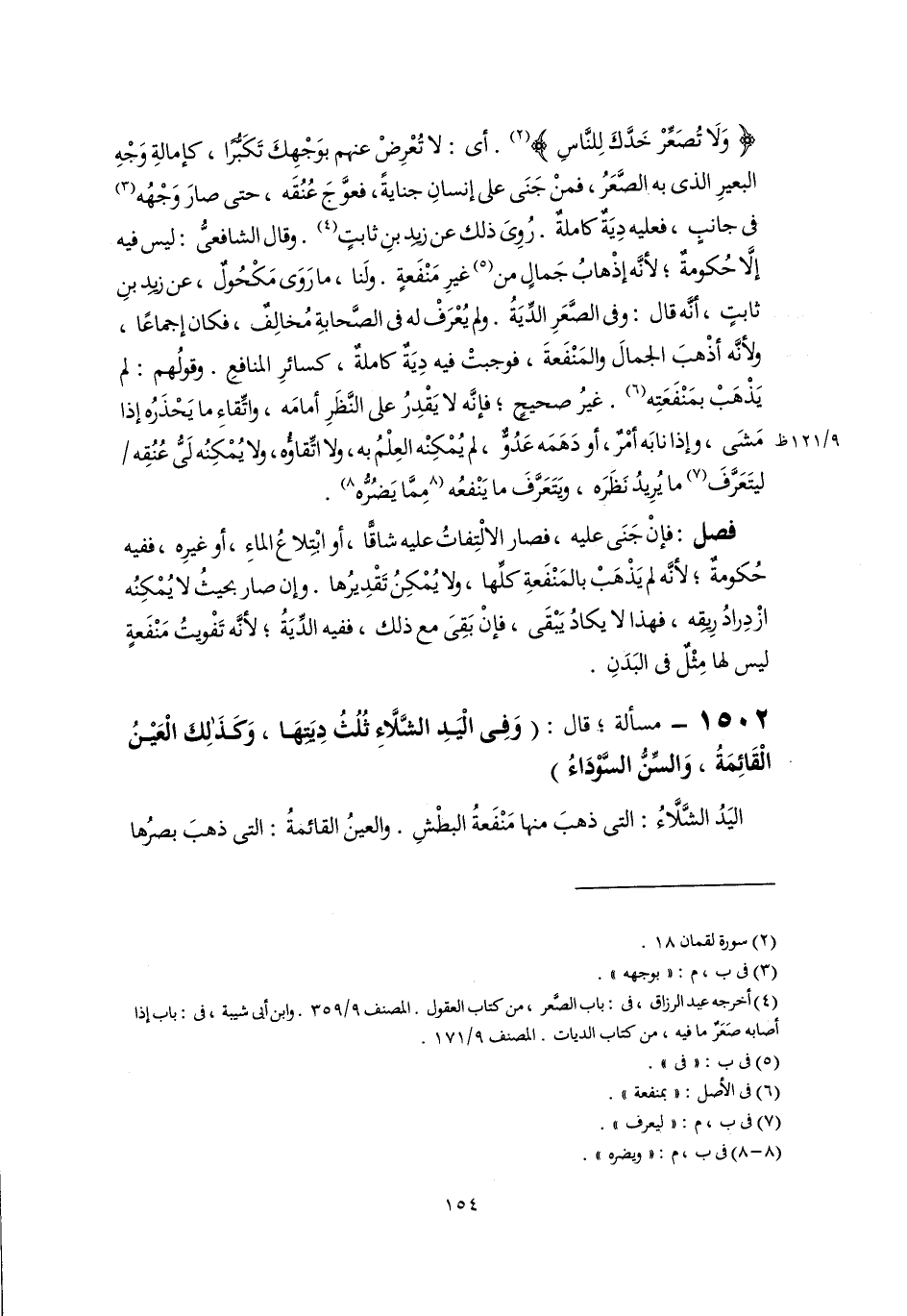 (٤) أخرجه عبد الرزاق، في: باب الصَّعر، من كتاب العقول. المصنف ٩/ ٣٥٩. وابن أبي شيبة، في: باب إذا أصابه صَعَرٌ ما فيه، من كتاب الديات. المصنف ٩/ ١٧١.