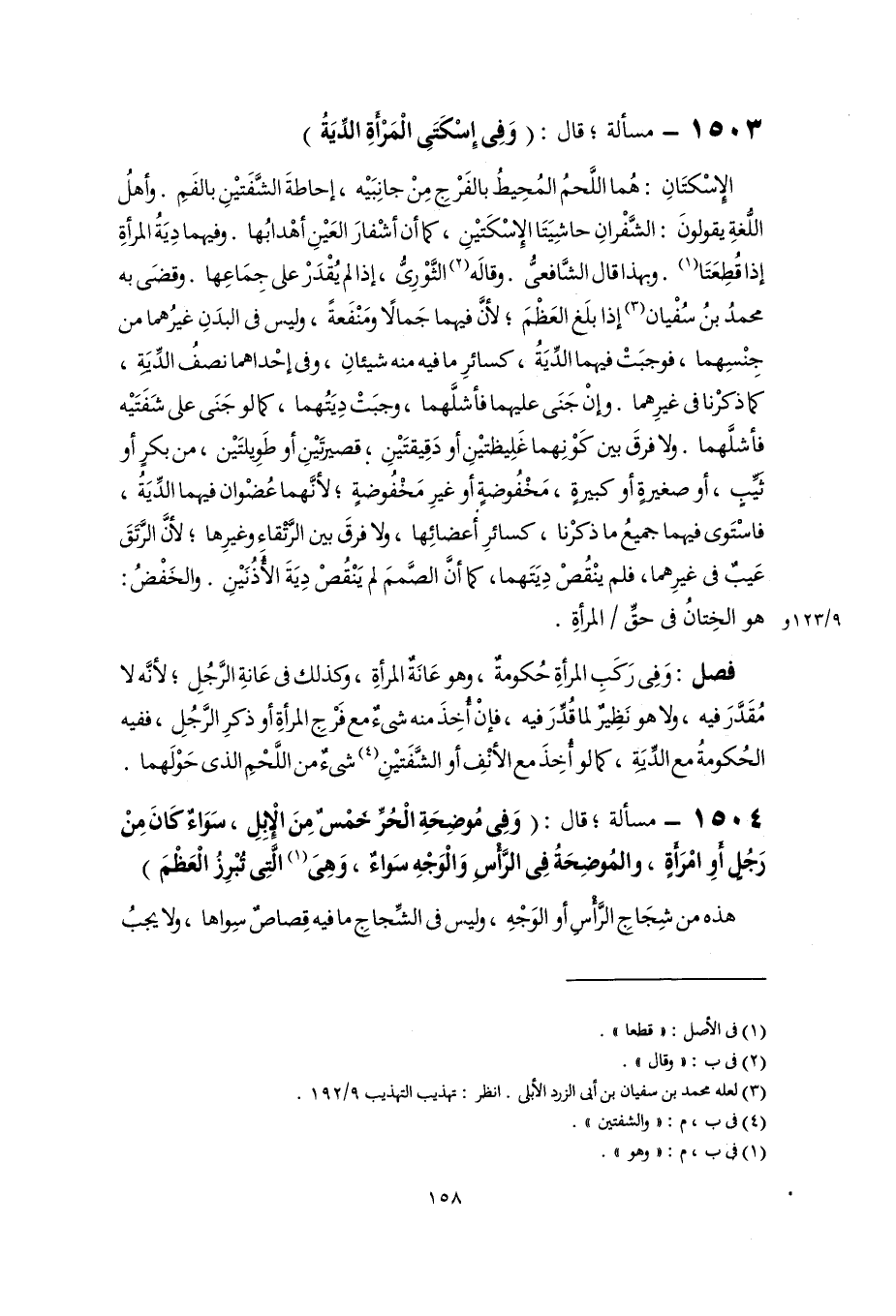 الإِسْكتَانِ: هُما اللَّحمُ المُحِيطُ بالفَرْجِ مِنْ جانِبَيْه، إحاطةَ الشَّفَتيْنِ بالفَمِ. وأهلُ اللُّغةِ يقولونَ: الشَّفْرانِ حاشِيَتَا الإِسْكَتيْنِ، كما أن أشْفارَ العَيْنِ أهْدابُها. وفيهما دِيَةُ المرأةِ إذا قُطِعَتَا (١). وبهذا قال الشَّافعيُّ. وقالَه (٢) الثَّوْرِيُّ، إذا لم يُقْدَرْ على جِمَاعِها. وقضَى به محمدُ بنُ سُفْيان (٣) إذا بلَغ العَظْمَ؛ لأنَّ فيهما جَمالًا ومَنْفَعةً، وليس في البدَنِ غيرُهما من جِنْسِهما، فوجبَتْ فيهما الدِّيَةُ، كسائرِ ما فيه منه شيئانِ، وفي إحْداهما نصفُ الدِّيَةِ، كما ذكرْنا في غيرِهما. وإنْ جَنَى عليهما فأشلَّهما، وجبَتْ دِيَتُهما، كما لو جَنَى على شَفَتَيْه فأشلَّهما. ولا فرقَ بين كَوْنِهما غَلِيظتيْنِ أو دَقِيقتَيْنِ, قصيرتَيْنِ أو طَوِيلتَيْن، من بكرٍ أو ثَيِّبٍ، أو صغيرةٍ أو كبيرةٍ، مَخْفُوضةٍ أو غيرِ مَخْفُوضةٍ؛ لأنَّهما عُضْوان فيهما الدِّيَةُ، فاسْتَوى فيهما جميعُ ما ذكرْنا، كسائرِ أعضائِها، ولا فرقَ بين الرَّتْقاء وغيرِها؛ لأنَّ الرَّتَقَ عَيبٌ في غيرِهما، فلم ينْقُصْ دِيَتَهما، كما أنَّ الصَّممَ لم يَنْقُصْ دِيَةَ الأذُنَيْنِ. والخَفْضُ: هو الخِتانُ في حقِّ المرأةِ.