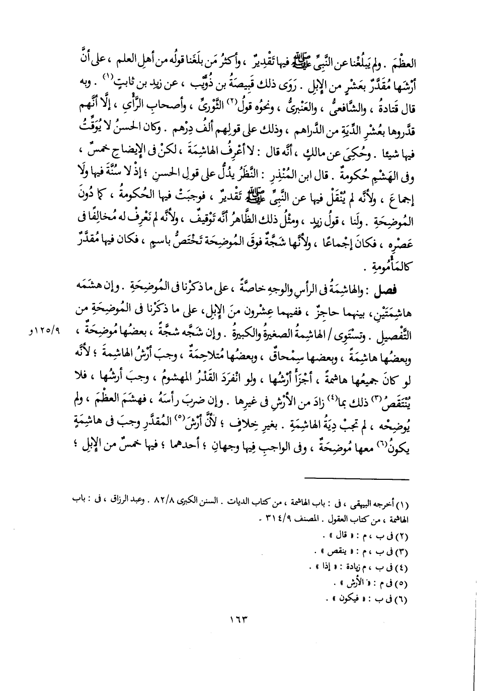 (١) أخرجه البيهقي، في: باب الهاشمة، من كتاب الديات. السنن الكبرى ٨/ ٨٢. وعبد الرزاق، في: باب الهاشمة من كتاب العقول. المصنف ٩/ ٣١٤.