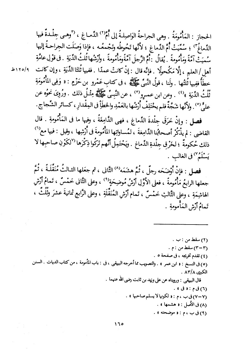 (٥) في النسخ: "ابن عمر". والتصويب مما أخرجه البيهقي، في: باب المأمومة، من كتاب الديات. السنن الكبرى ٨/ ٨٣.