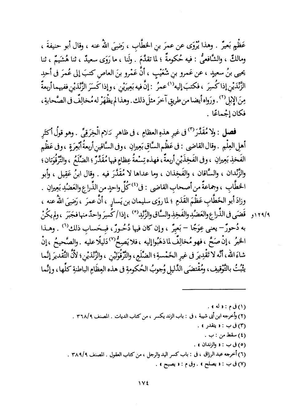 (٦) أخرجه عبد الرزاق، في: باب كسر اليد والرجل، من كتاب العقول. المصنف ٩/ ٣٨٩.