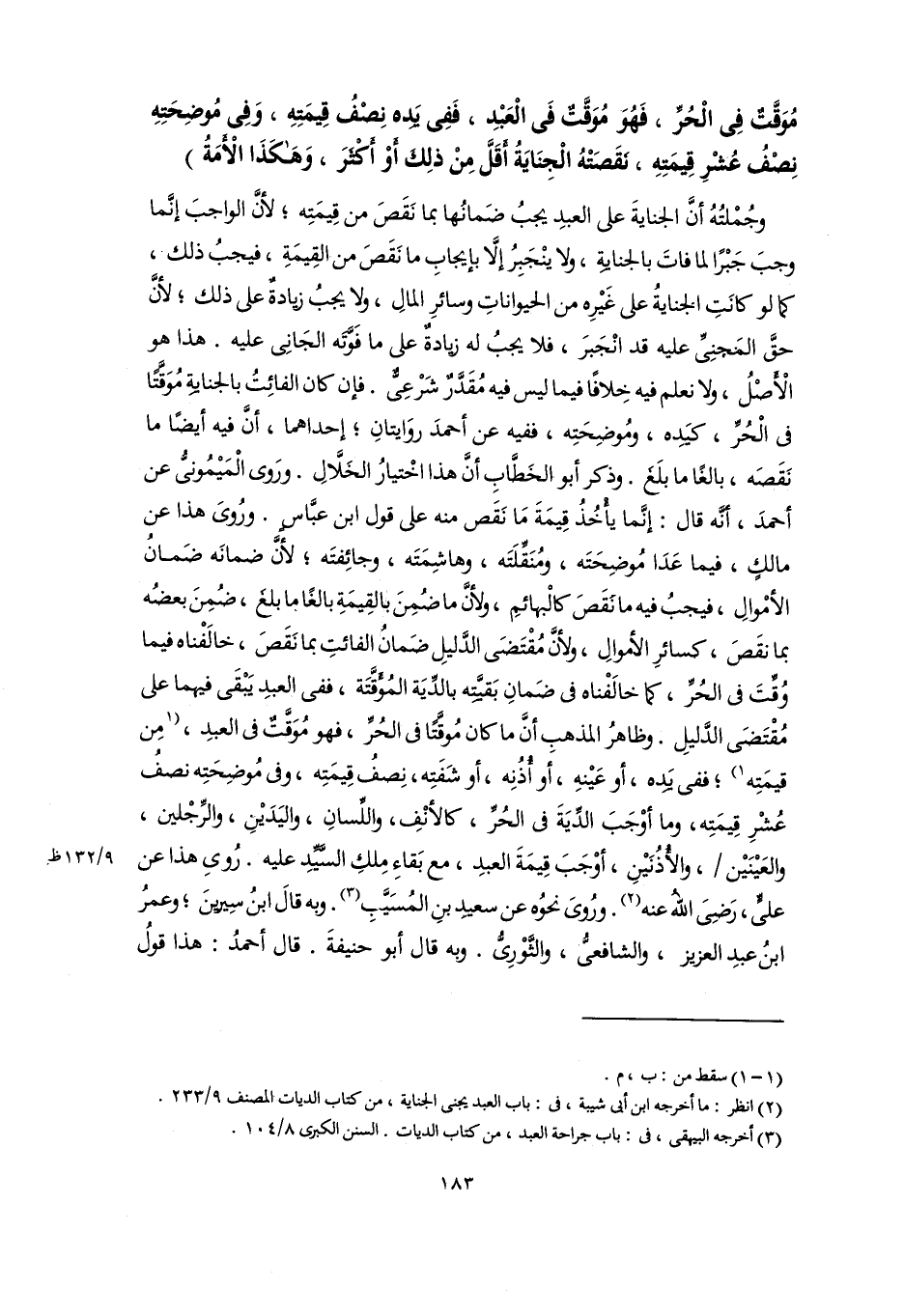 (٣) أخرجه البيهقي، في: باب جراحة العبد، من كتاب الديات. السنن الكبرى ٨/ ١٠٤.