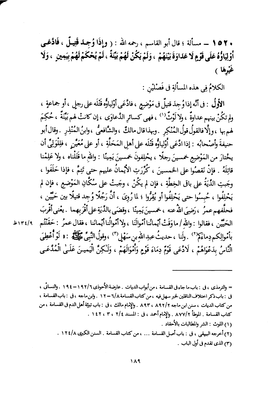 (٢) أخرجه البيهقي، في: باب أصل القسامة. . ., من كتاب القسامة. السنن الكبرى ٨/ ١٢٤.