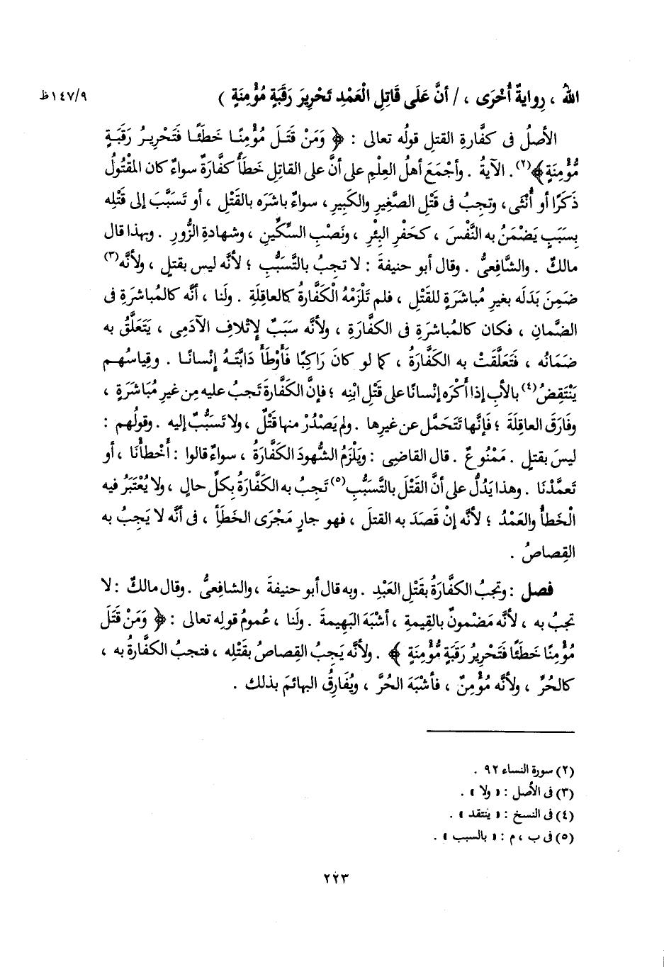 (٢) سورة النساء ٩٢.