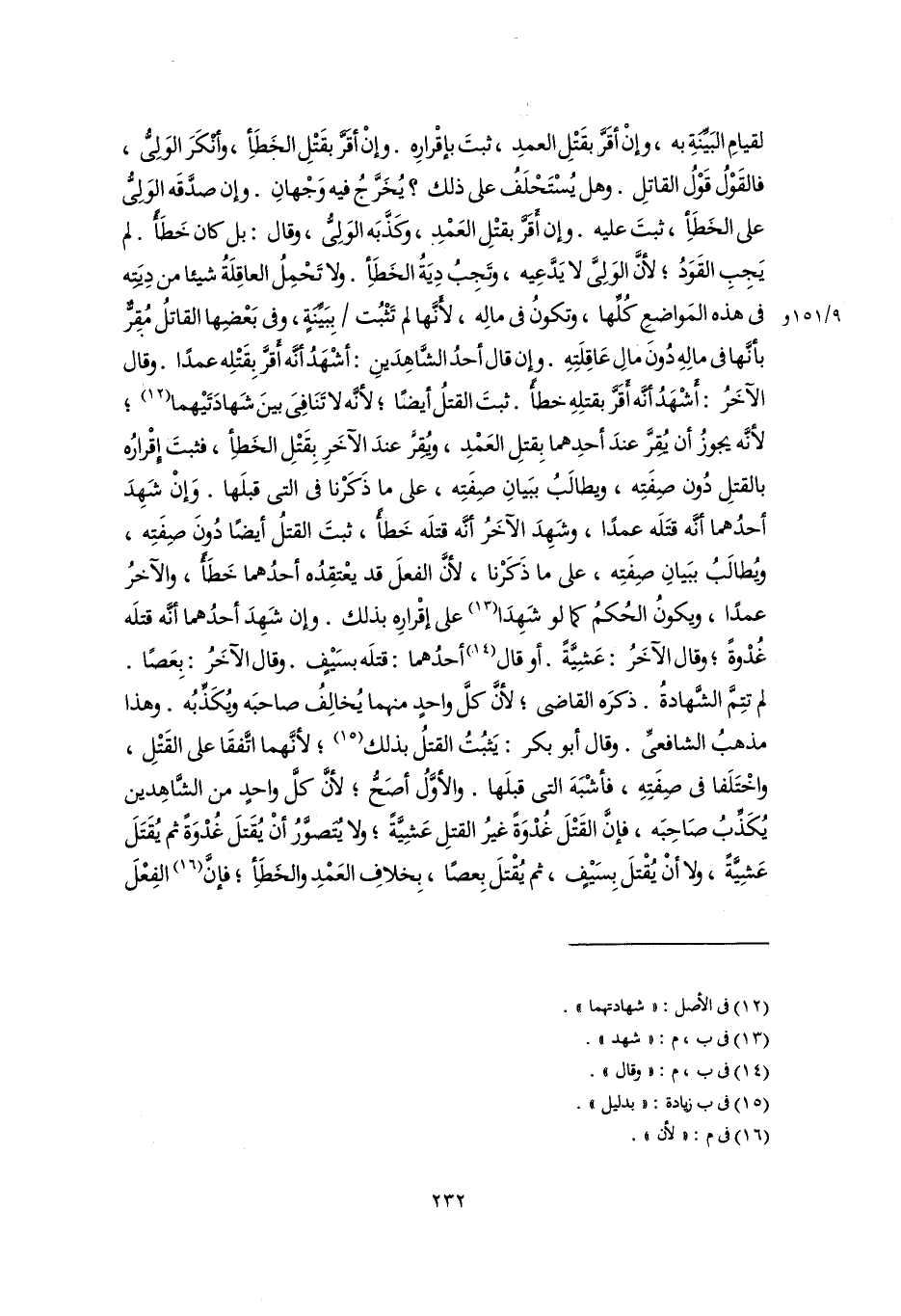 لقيامِ البَيِّنَةِ به، وإنْ أقَرَّ بقَتْلِ العمدِ، ثبتَ بإقْرارِه. وإنْ أقَرَّ بقَتْلِ الخَطَإِ، وأنْكَرَ الوَلِيُّ، فالقَوْلُ قَوْلُ القاتلِ. وهل يُسْتَحْلَفُ على ذلك؟ يُخَرَّجُ فيه وَجْهانِ. وإن صدَّقَه الوَلِيُّ على الخَطَإِ، ثبتَ عليه. وإن أَقَرَّ بقتْلِ العَمْدِ، وكَذَّبَه الوَلِيُّ، وقال: بل كان خَطَأً. لم يَجِبِ القَوَدُ؛ لأنَّ الوَلِيَّ لا يَدَّعِيه، وتَجِبُ دِيَةُ الخَطَإِ. ولا تَحْمِلُ العاقِلَةُ شيئًا من دِيَتِه في هذه المَواضعِ كُلِّها، وتكونُ في مالِه، لأَنَّها لم تَثْبُت بِبَيِّنَةٍ، وفي بَعْضِها القاتلُ مُقِرٌّ بأنَّها في مالِهِ دُونَ مالِ عَاقِلَتِهِ. وإن قال أحدُ الشَّاهِدَينِ: أشْهَدُ أنَّه أَقرَّ بِقَتْلِه عمدًا. وقال الآخَرُ: أَشْهَدُ أنَّه أَقَرَّ بقتلِهِ خطأً. ثبتَ القتلُ أيضًا؛ لأنَّه لا تَنَافِيَ بينَ شَهادَتَيْهما (١٢)؛ لأنَّه يجوزُ أن يُقِرَّ عندَ أحدِهما بِقتلِ العَمْدِ، ويُقِرَّ عندَ الآخَرِ بِقَتْلِ الخَطإِ، فثبتَ إِقْرارُه بالقتلِ دُون صِفَتِه، ويطالَبُ ببَيانِ صِفَتِه، على ما ذَكَرْنا في التي قبلَها. وَإنْ شَهِدَ أحدُهما أنَّه قتَلَه عمدًا، وشَهِدَ الآخَرُ أنَّه قتلَه خَطأً، ثبتَ القتلُ أيضًا دُونَ صِفَتِه، ويُطالَبُ ببَيانِ صِفَتِه، على ما ذَكَرْنا، لأنَّ الفعلَ قد يعْتقِدُه أحدُهما خَطَأً، والآخرُ عمدًا، ويكونُ الحُكمُ كما لو شَهِدَا (١٣) على إقْرارِه بذلك. وإن شَهِدَ أحدُهما أنَّه قتلَه غُدْوةً؛ وقال الآخَرُ: عَشِيَّةً. أو قال (١٤) أحدُهما: قتلَه بسَيْفٍ. وقال الآخَرُ: بِعَصًا. لم تتِمَّ الشَّهادةُ. ذكرَه القاضي؛ لأنَّ كلَّ واحدٍ منهما يُخالِفُ صاحبَه ويُكَذِّبُه. وهذا مذهبُ الشافعيِّ. وقال أبو بكر: يَثبُتُ القتلُ بذلك (١٥)؛ لأنَّهما اتَّفقَا على القَتْلِ، واخْتَلَفا في صِفَتِهِ، فأشْبَهَ التي قبلَها. والأوَّلُ أصحُّ؛ لأنَّ كلَّ واحدٍ من الشَّاهِدين يُكَذِّبُ صَاحِبَه، فإنَّ القَتْلَ غُدْوَةً غيرُ القتلِ عَشِيَّةً؛ ولا يُتَصوَّرُ أنْ يُقتَلَ غُدْوَةً ثم يُقتَلَ عَشِيَّةً، ولا أنْ يُقْتلَ بِسَيْفٍ، ثم يُقْتلَ بِعصًا، بِخلافِ العَمْدِ والخَطَإِ؛ فإنَّ (١٦) الفِعْلَ
