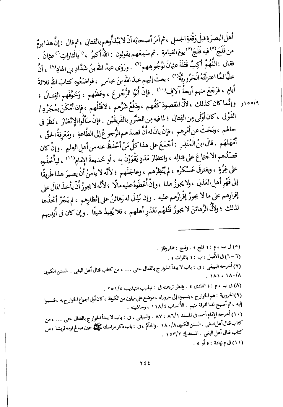 (٧) أخرجه البيهقي، في: باب لا يبدأ الخوارج بالقتال حتى. . ., من كتاب قتال أهل البغى. السنن الكبرى ٨/ ١٨٠، ١٨١.
