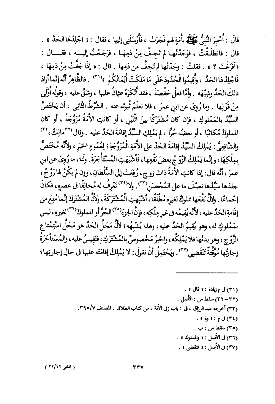 (٣٣) أخرجه عبد الرزاق، في: باب زنى الأمة، من كتاب الطلاق. المصنف ٧/ ٣٩٥.