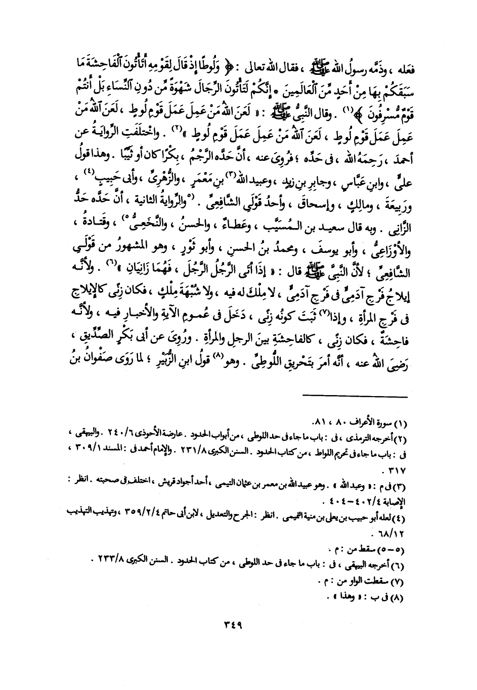 (٢) أخرجه الترمذي، في: باب ما جاء في حد اللوطى، من أبواب الحدود. عارضة الأحوذى ٦/ ٢٤٠. والبيهقي، في: باب ما جاء في تحريم اللواط، من كتاب الحدود. السنن الكبرى ٨/ ٢٣١. والإِمام أحمد في: المسند ١/ ٣٠٩، ٣١٧.