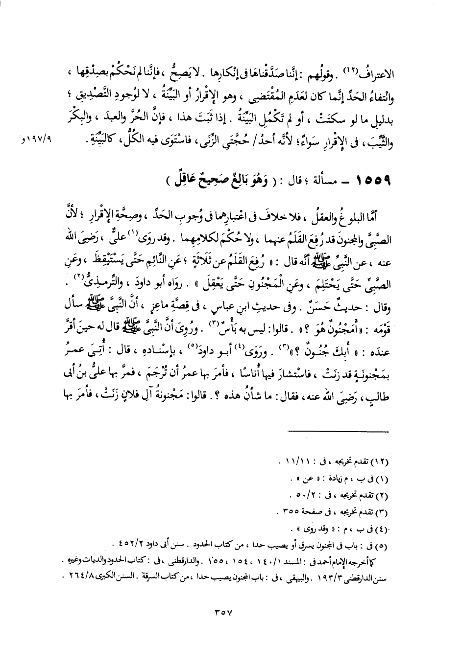 (٥) في: باب في المجنون يسرق أو يصيب حدا، من كتاب الحدود. سنن أبي داود ٢/ ٤٥٢.