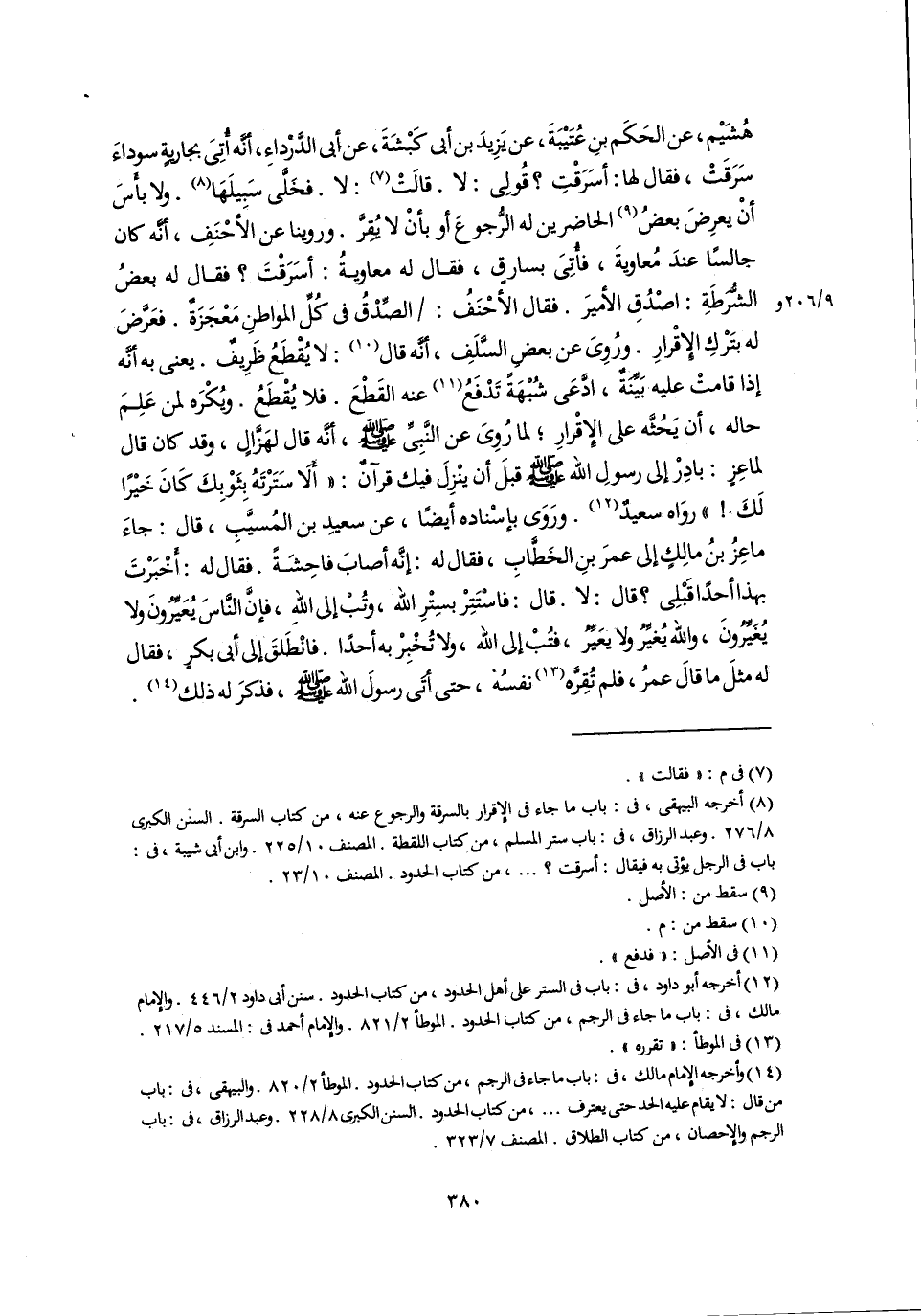 (٨) أخرجه البيهقي، في: باب ما جاء في الإِقرار بالسرقة والرجوع عنه، من كتاب السرقة. السنن الكبرى ٨/ ٢٧٦. وعبد الرزاق، في: باب ستر المسلم، من كتاب اللقطة. المصنف ١٠/ ٢٢٥. وابن أبي شيبة، في: باب في الرجل يؤتى به فيقال: أسرقت؟ . . ., من كتاب الحدود. المصنف ١٠/ ٢٣.