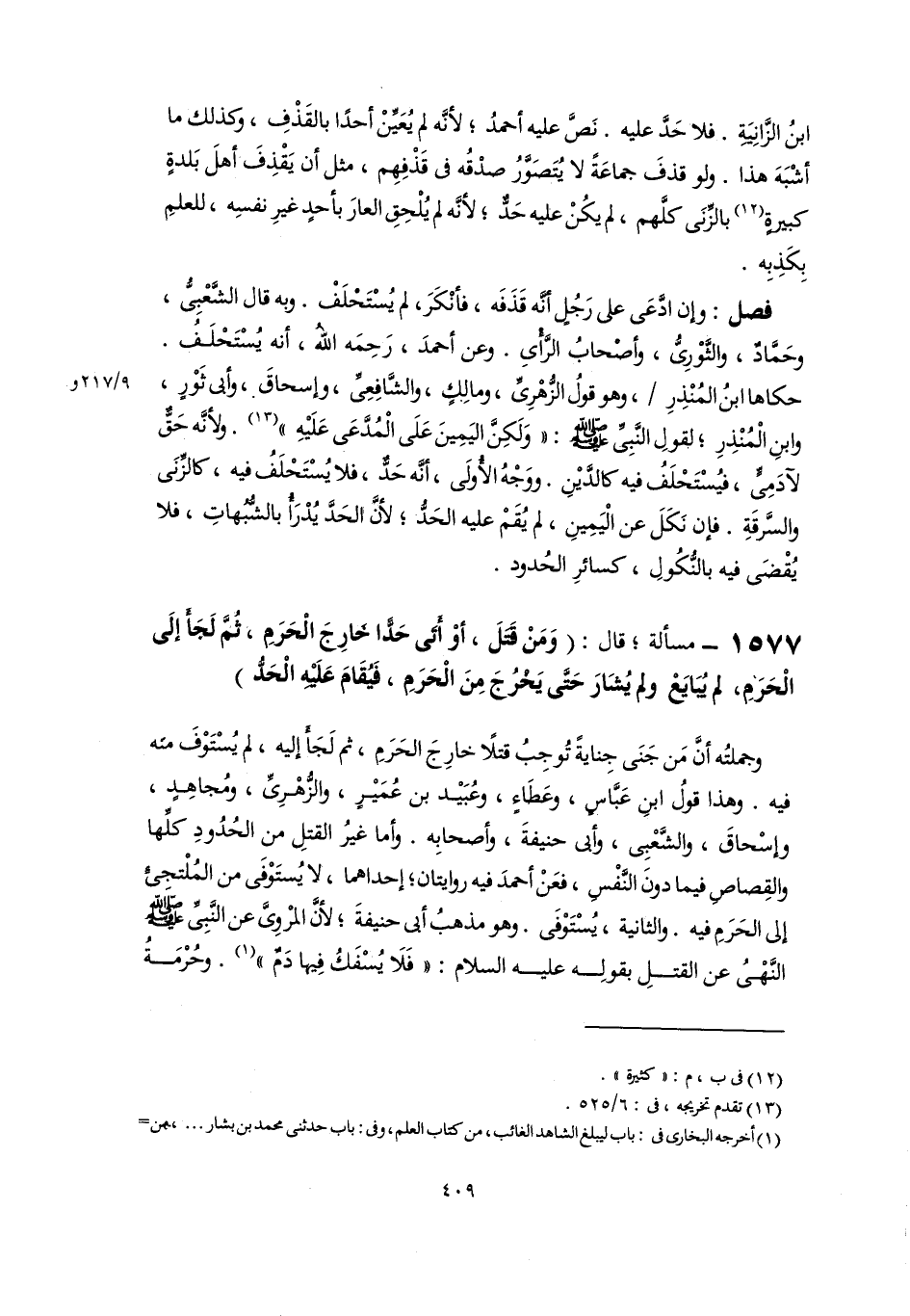 فصل: وإن ادَّعَى على رَجُلٍ أنَّه قَذَفَه، فأنْكَرَ، لم يُسْتَحْلَفْ. وبه قال الشَّعْبِيُّ، وحَمَّادٌ، والثَّوْرِىُّ، وأصْحابُ الرَّأْىِ. وعن أحمدَ، رَحِمَه اللهُ، أنه يُسْتَحْلَفُ. حكاها ابنُ المُنْذِرِ، وهو قولُ الزُّهْرِىِّ، ومالِكٍ، والشَّافِعِىِّ، وإسحاقَ، وأبي ثَوْرٍ، وابنِ الْمُنْذِرِ؛ لقولِ النَّبِيِّ -صلى اللَّه عليه وسلم-: "وَلَكِنَّ اليَمِينَ عَلَى الْمُدَّعَى عَلَيْهِ" (١٣). ولأنَّه حَقٌّ لآدَمِىٍّ، فيُسْتَحْلَفُ فيه كالدَّيْنِ. ووَجْهُ الأُولَى، أنَّه حَدٌّ، فلا يُسْتَحْلَفُ فيه، كالزِّنِى والسَّرقَةِ. فإن نَكَلَ عن الْيَمِينِ، لم يُقَمْ عليه الحَدُّ؛ لأنَّ الحَدَّ يُدْرَأُ بالشُّبُهاتِ، فلا يُقْضَى فيه بالنُّكُولِ، كسائرِ الحُدود.