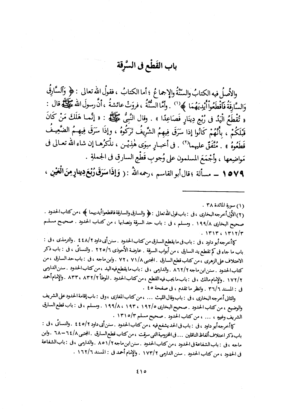 ١٥٧٩ - مسألة؛ قال أبو القاسم، رحمه اللهُ: (وَإذَا سَرَقَ رُبْعَ دِينارٍ مِنَ الْعَيْنِ،