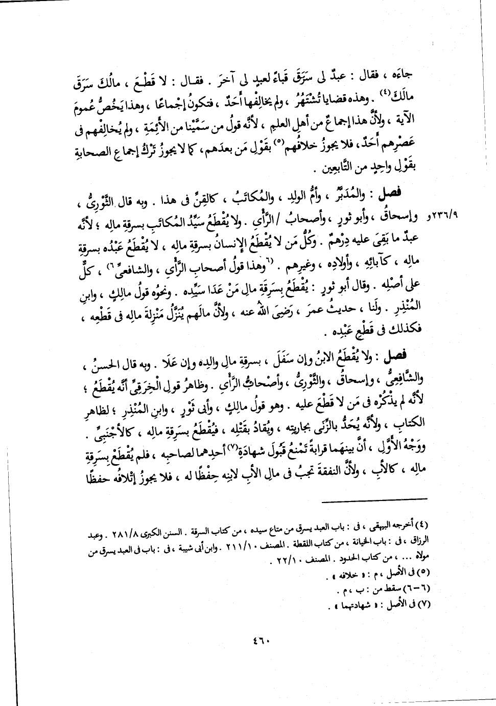 جاءَه، فقال: عبدٌ لي سَرَقَ قَباءً لعبدِ لي آخرَ. فقال: لا قَطْعَ، مالُكَ سَرَقَ مالَكَ (٤). وهذه قضايا تُشْتَهُرُ، ولم يخالِفْها أَحَدٌ، فتكونُ إجْماعَا، وهذا يَخُصُّ عُمومَ الآية، ولأنَّ هذا إجماعٌ من أهلِ العلمِ، لأنَّه قلُ من سَمَّيْنا من الأَئِمَةِ، ولم يُخالِفْهم في عَصْرِهم أَحَدٌ، فلا يجوزُ خلافُهم (٥) بقَوْلِ مَن بعدَهم، كما لا يجوزُ تَرْكُ إجماعِ الصحابةِ بقَوْلِ واحِدٍ من التَّابعِين.
