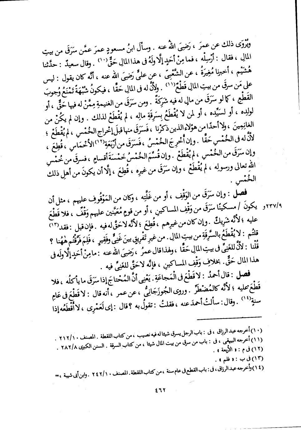 (١١) أخرجه البيهقي، في: باب من سرق من بيت المال شيئا، من كتاب السرقة. السنن الكبرى ٨/ ٢٨٢.