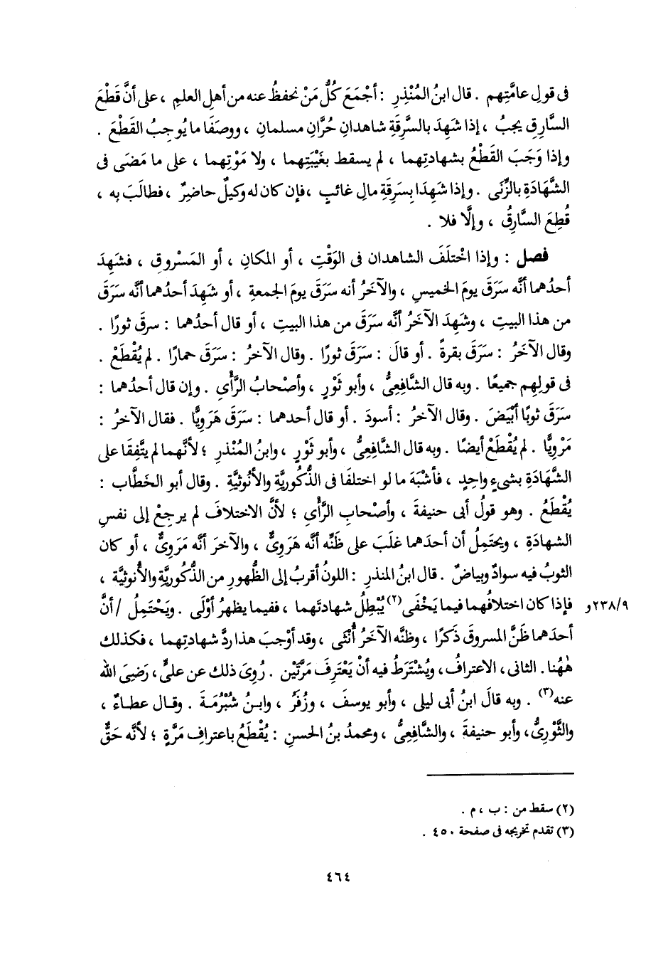 فصل: وإذا اخْتلَفَ الشاهدان في الوَقْتِ، أو المكانِ، أو المَسْروقِ، فشَهِدَ أحدُهما أنَّه سَرَقَ يومَ الخميسِ، والآخَرُ أنه سَرَقَ يومَ الجمعةِ، أو شَهِدَ أحدُهما أنَّه سَرَقَ من هذا البيتِ، وشَهِدَ الآخَرُ أنَّه سَرَقَ من هذا البيتِ، أو قال أحدُهما: سرقَ ثورًا. وقال الآخَرُ. سَرَقَ بقرةً. أو قالَ: سَرَقَ ثورًا. وقال الآخرُ: سَرَقَ حمارًا. لم يُقْطَعْ. في قولِهِم جميعًا. وبه قال الشَّافِعِىُّ، وأبو ثَوْرٍ، وأصْحابُ الرَّأْىِ. وإن قال أحدُهما: سَرَقَ ثوبًا أبْيَضَ. وقال الآخرُ: أسودَ. أو قال أحدهما: سَرَقَ هَرَوِيًّا. فقال الآخرُ: مَرْوِيًّا. لم يُقْطَعْ أيضًا. وبه قال الشَّافِعِىُّ، وأبو ثَوْرٍ، وابنُ المُنْذرِ؛ لأنَّهما لم يتَّفِقَا على الشَّهَادَةِ بشيءٍ واحِدٍ، فأشْبَهَ ما لو اختلفَا في الذُّكُوريَّةِ والأنُوثيَّةِ وقال أبو الخَطَّاب: يُقْطَعُ. وهو قولُ أبى حنيفةَ، وأصْحابِ الرَّأْىِ؛ لأنَّ الاختلافَ لم يرجِعْ إلى نفسِ الشهادَةِ، ويحتَمِلُ أن أحدَهما غلَبَ على ظَنِّه أنَّه هَرَوِىٌّ، والآخرَ أنَّه مَرَوِىٌّ، أو كان الثوبُ فيه سوادٌ وبياضٌ. قال ابنُ المنذرِ: اللونُ أقربُ إلى الظُّهورِ من الذُّكُوريَّةِ والأُنوثيَّة، فإذا كان اختلافُهما فيما يَخْفَى (٢) يُبْطِلُ شهادتَهما، ففيما يظهرُ أوْلَى. ويَحْتَمِلُ أنَّ أحدَهما ظَنَّ المسروقَ ذَكرًا، وظنَّه الآخَرُ أُنْثَى، وقد أوْجبَ هذا ردَّ شهادتِهما، فكذلك ههُنا. الثاني، الاعترافُ، ويُشْتَرَطُ فيه أنْ يَعْتَرِفَ مَرَّتَيْن، رُوِىَ ذلك عن عليٍّ، رَضِىَ اللَّه عنه (٣). وبه قالَ ابنُ أبي ليلى، وأبو يوسفَ، وزُفَرُ، وابنُ شُبْرُمَةَ. وقال عطاءٌ، والثَّوْرِىُّ، وأبو حنيفةَ، والشَّافِعِىُّ، ومحمدُ بنُ الحسنِ: يُقْطَعُ باعترافِ مَرَّةٍ؛ لأنَّه حَقٌّ