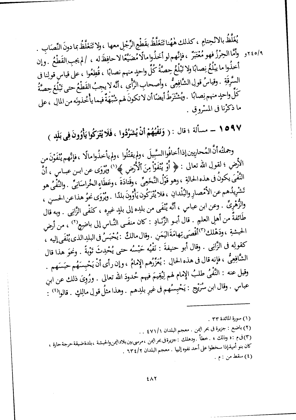 ١٥٩٧ - مسألة؛ قال: (وَنَفْيُهُمْ أنْ يُشَرَّدُوا، فَلَا يُتْرَكُوا يَأْوُونَ فِي بَلَدٍ)
