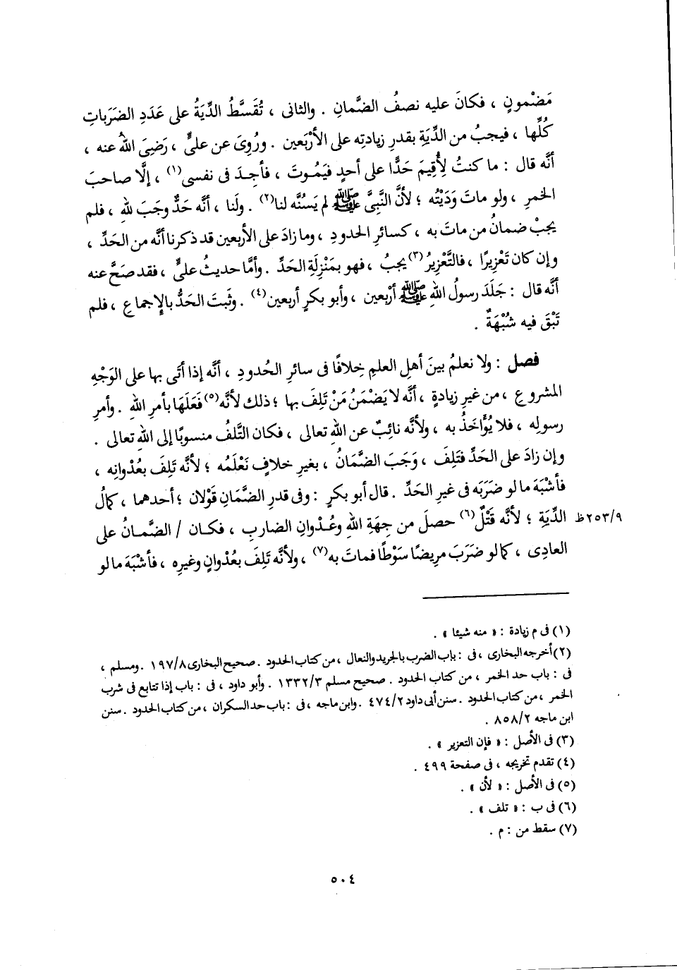 فصل: ولا نعلمُ بينَ أهلِ العلمِ خِلافًا في سائرِ الحُدودِ، أنَّه إذا أتَى بها على الوَجْهِ المشروعِ، من غيرِ زيادةٍ، أنَّه لا يَضْمَنُ مَنْ تَلِفَ بها؛ ذلك لأنَّه (٥) فَعَلَهَا بأمرِ اللهِ. وأمرِ رسولِه، فلا يُؤَاخَذُ به، ولأنَّه نائِبٌ عن اللهِ تعالى، فكان التَّلفُ منسوبًا إلى اللهِ تعالى. وإن زادَ على الحَدِّ فتَلِفَ، وَجَبَ الضَّمَانُ، بغيرِ خلافٍ نَعْلَمُه؛ لأنَّه تَلِفَ بعُدْوانِه، فأشْبَهَ ما لو ضَرَبَه في غيرِ الحَدِّ. قال أبو بكرٍ: وفى قدرِ الضَّمَانِ قَوْلان؛ أحدهما، كمالُ الدِّيَةِ؛ لأنَّه قَتْلٌ (٦) حصلَ من جِهَةِ اللهِ وعُدْوانِ الضاربِ، فكان الضَّمانُ على العادِى، كما لو ضَرَبَ مرِيضًا سَوْطًا فماتَ به (٧)، ولأنَّه تَلِفَ بعُدْوانٍ وغيرِه، فأشْبَهَ ما لو