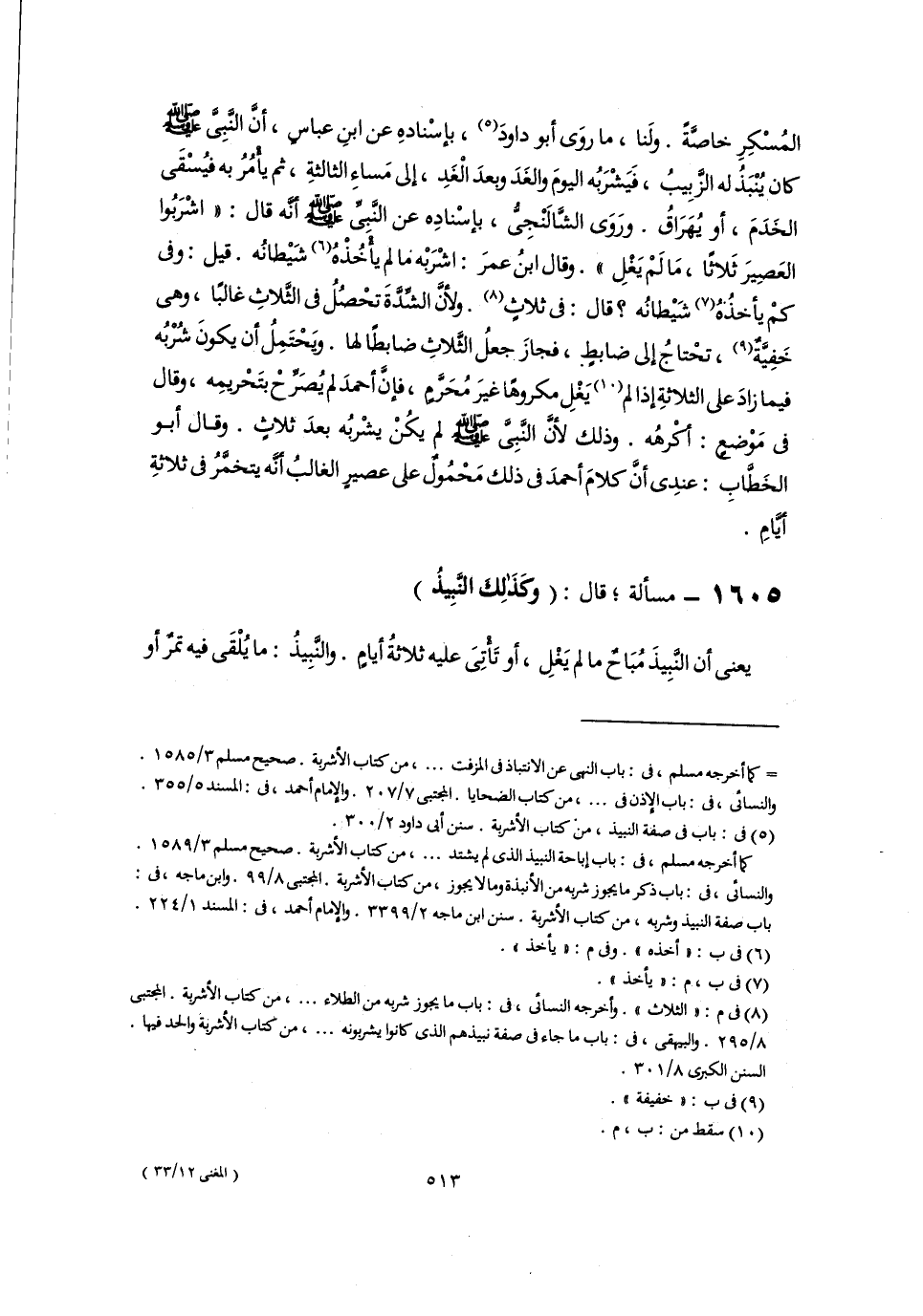 ١٦٠٥ - مسألة؛ قال: (وكَذَلِكَ النَّبِيذُ)