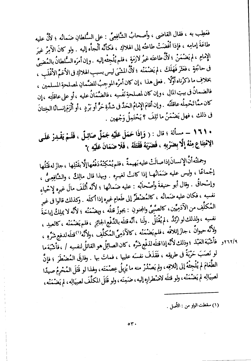 فعَطِب به، فقال القاضي، وأصحابُ الشَّافِعِىِّ: على السُّلطانِ ضَمانُه؛ لأنَّ عليه طاعَةَ إمامِه، فإذا أفْضَتْ طاعتُه إلى الهلاكِ، فكأنَّه ألْجأَه إليه. ولو كانَ الآمِرُ غيرَ الإِمامِ، لم يَضْمَنْ؛ لأنَّ طاعتَه غيرُ لازمَةٍ، فلم يُلْجِئْه إليه. وإن أمرَه السُّلطانُ بالمُضِىِّ في حاجَةٍ، فعَثَرَ فَهَلَكَ، لم يَضْمَنْه؛ لأنَّ المشْىَ ليس بسببِ الهلاكِ في الأعَمِّ الأغْلَبِ، بخلافِ ما ذكرْناه أوَّلًا. فعلى هذا، إن كان أمرُه الموجِبُ للضَّمانِ لمصلحةِ المسلمين، فالضمانُ في بيتِ المالِ، وإن كان لمصلحةِ نَفْسِه، فالضَّمَانُ عليه، أو على عاقلَتِه، إن كان ممَّا تَحْمِلُه عاقلَتُه. وإن أقامَ الإِمامُ الحَدَّ في شدَّةِ حَرٍّ أو بَرْدٍ، أو ألْزَمَ إنسانًا الخِتانَ في ذلك، فهل يَضْمَنُ ما تَلِفَ؟ يَحْتَمِلُ وَجْهين.