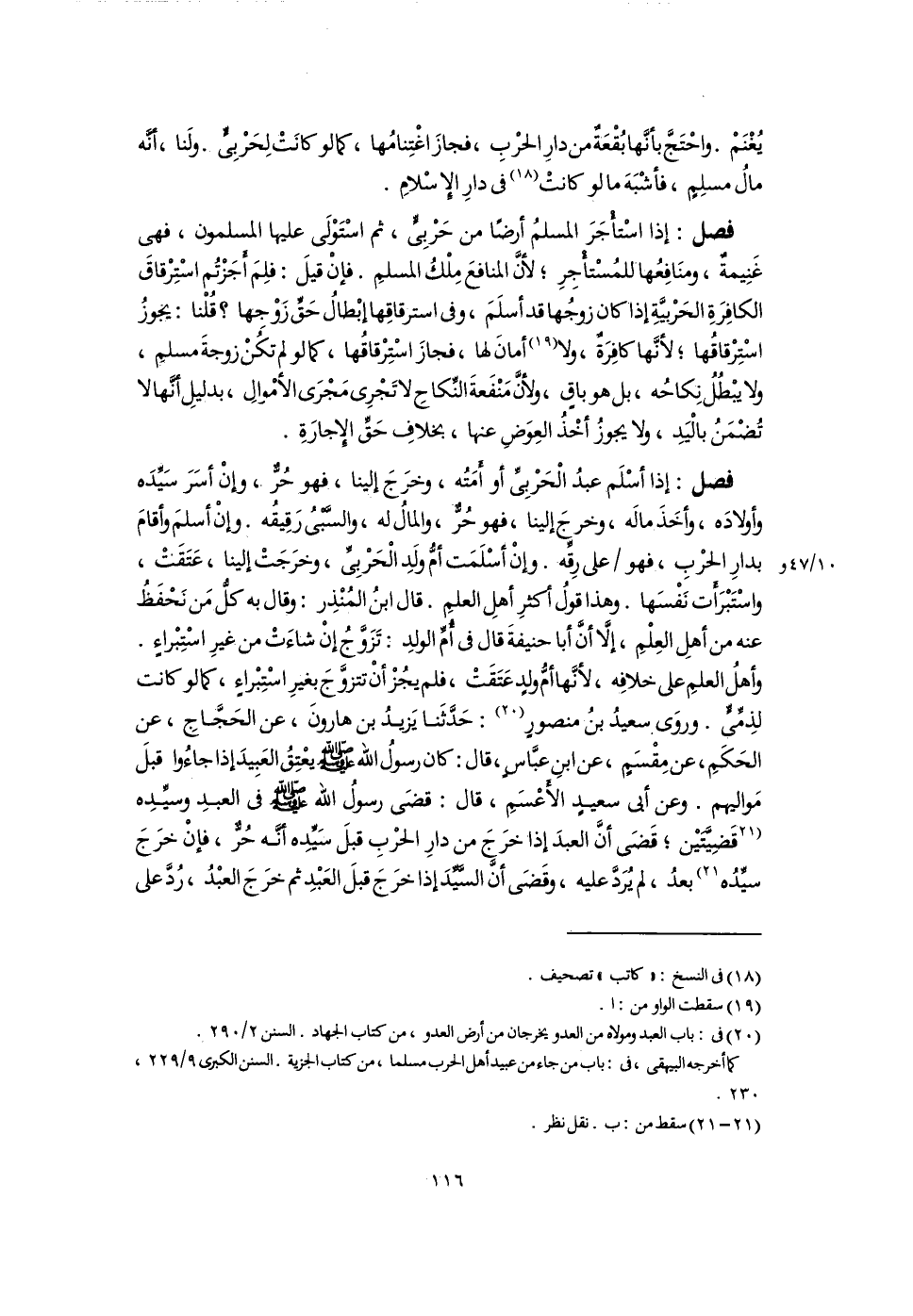 كما أخرجه البيهقى، فى: باب من جاء من عبيد أهل الحرب مسلما، من كتاب الجزية. السنن الكبرى ٩/ ٢٢٩، ٢٣٠.