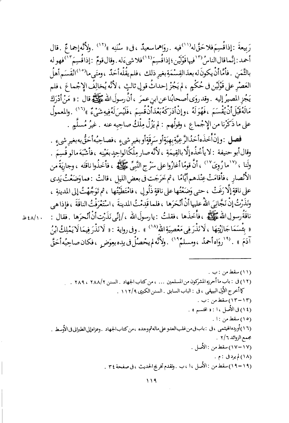 (١٢) فى: باب ما أحرزه المشركرن من المسلمين. . .، من كتاب الجهاد. السنن ٢/ ٢٨٨، ٢٨٩.