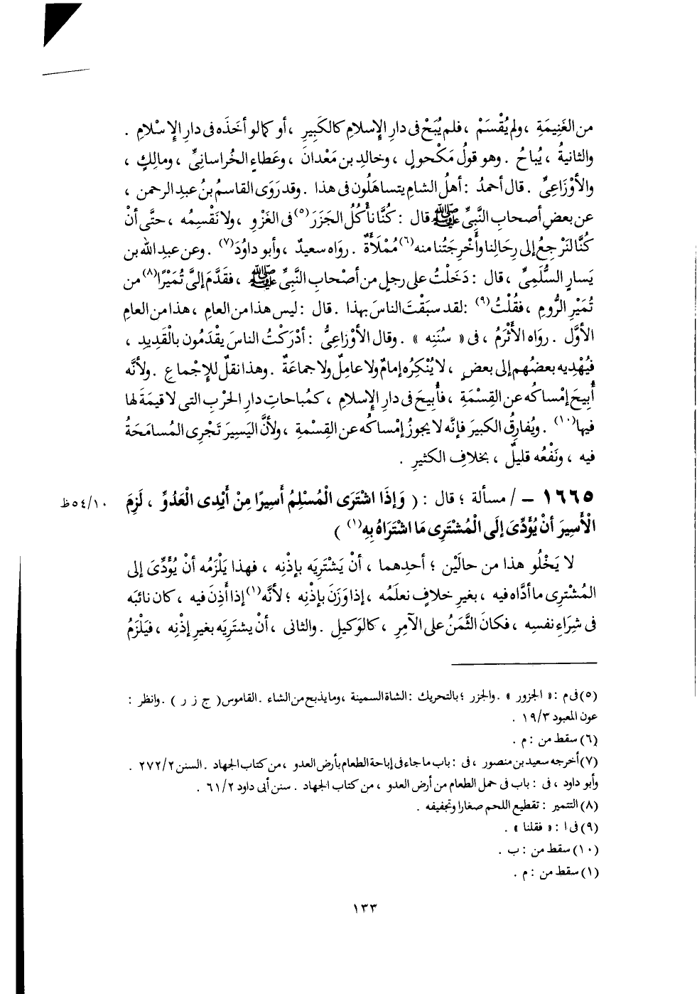 (٧) أخرجه سعيد بن منصور، فى: باب ما جاء فى إباحة الطعام بأرض العدو، من كتاب الجهاد. السنن ٢/ ٢٧٢. وأبو داود، فى: باب فى حمل الطعام من أرض العدو، من كتاب الجهاد. سنن أبى داود ٢/ ٦١.