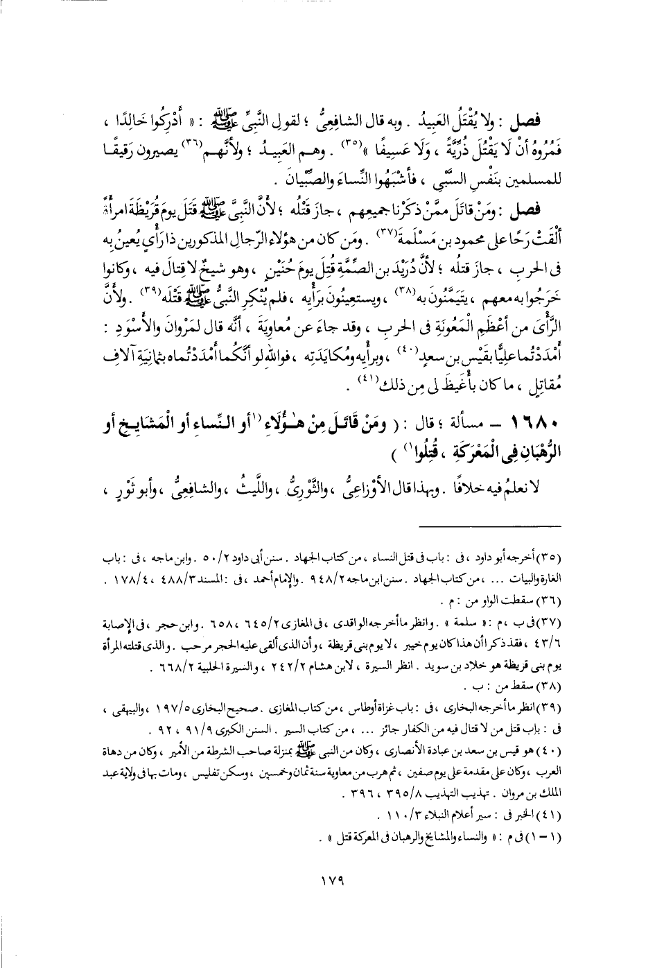 (٣٩) انظر ما أخرجه البخارى، فى: باب غزاة أوطاس، من كتاب المغازى. صحيح البخارى ٥/ ١٩٧، والبيهقى، فى: باب قتل من لا قتال فيه من الكفار جائز. . .، من كتاب السير. السنن الكبرى ٩/ ٩١، ٩٢.
