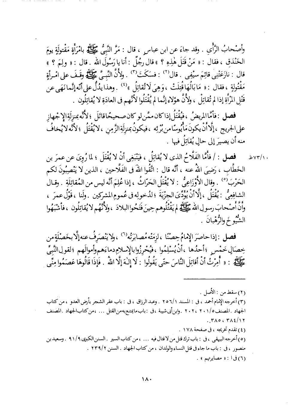 (٥) أخرجه البيهقى، فى: باب ترك قتل من لا قتال فيه. . .، من كتاب السير. السنن الكبرى ٩/ ٩١. وسعيد بن منصور، فى: باب ما جاء فى قتل النساء والولدان، من كتاب الجهاد. السنن ٢/ ٢٣٩.