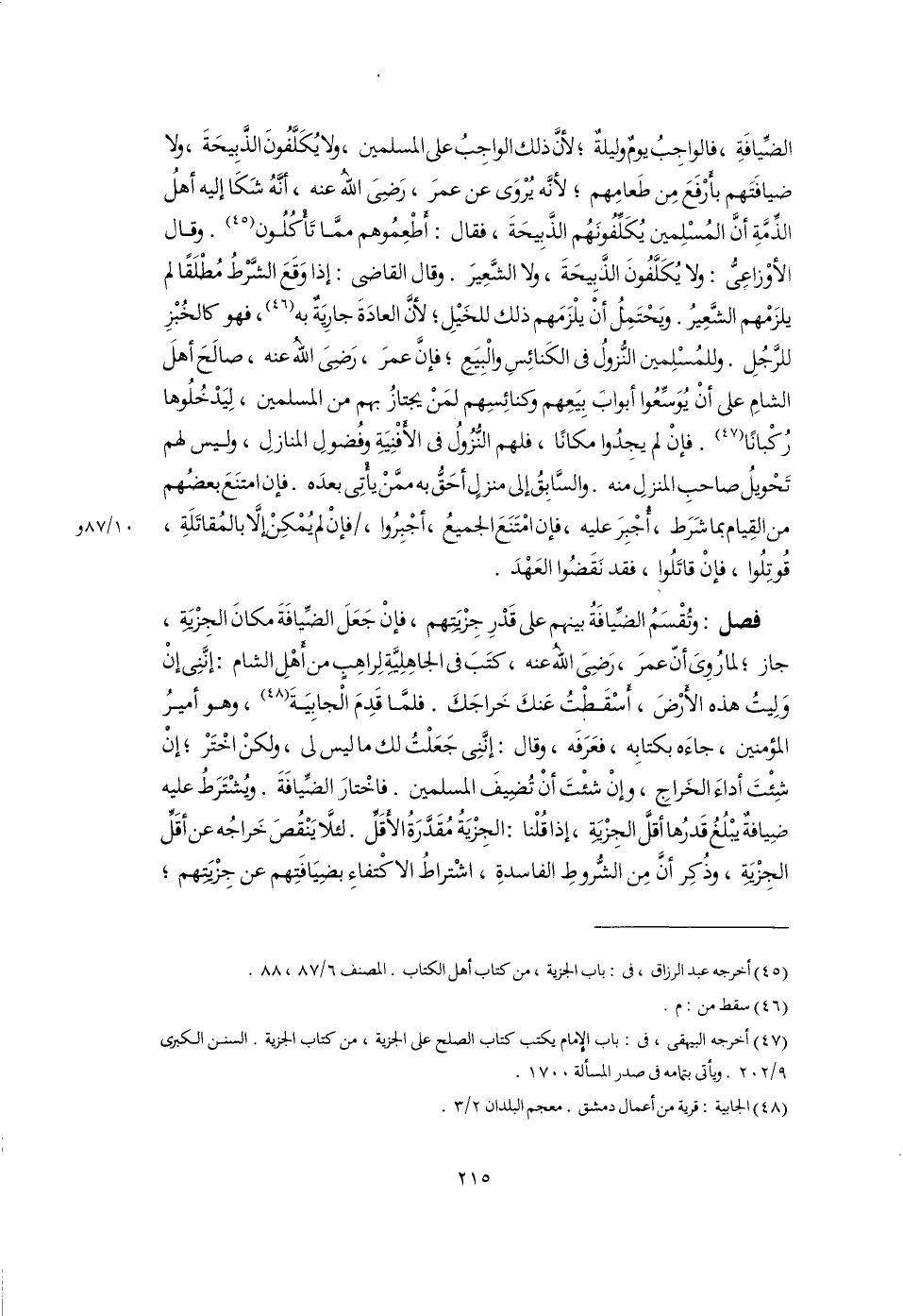 (٤٥) أخرجه عبد الرزاق، فى: باب الجزية، من كتاب أهل الكتاب. المصنف ٦/ ٨٧، ٨٨.
