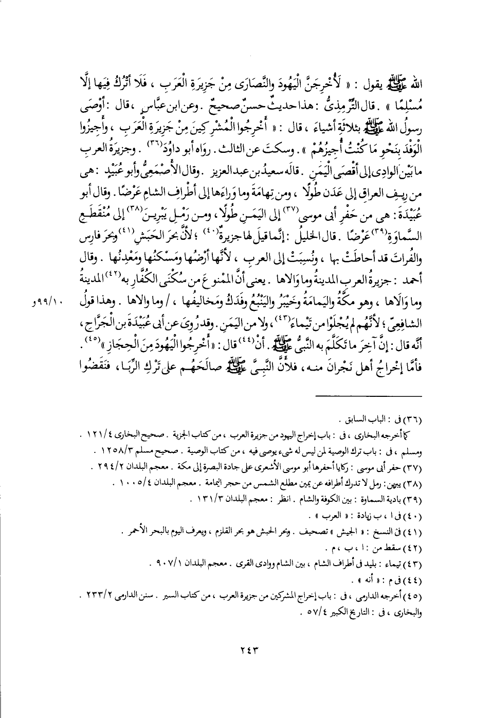 (٤٥) أخرجه الدارمى، فى: باب إخراج المشركين من جزيرة العرب، من كتاب السير. سنن الدارمى ٢/ ٢٣٣. والبخارى، فى: التاريخ الكبير ٤/ ٥٧.