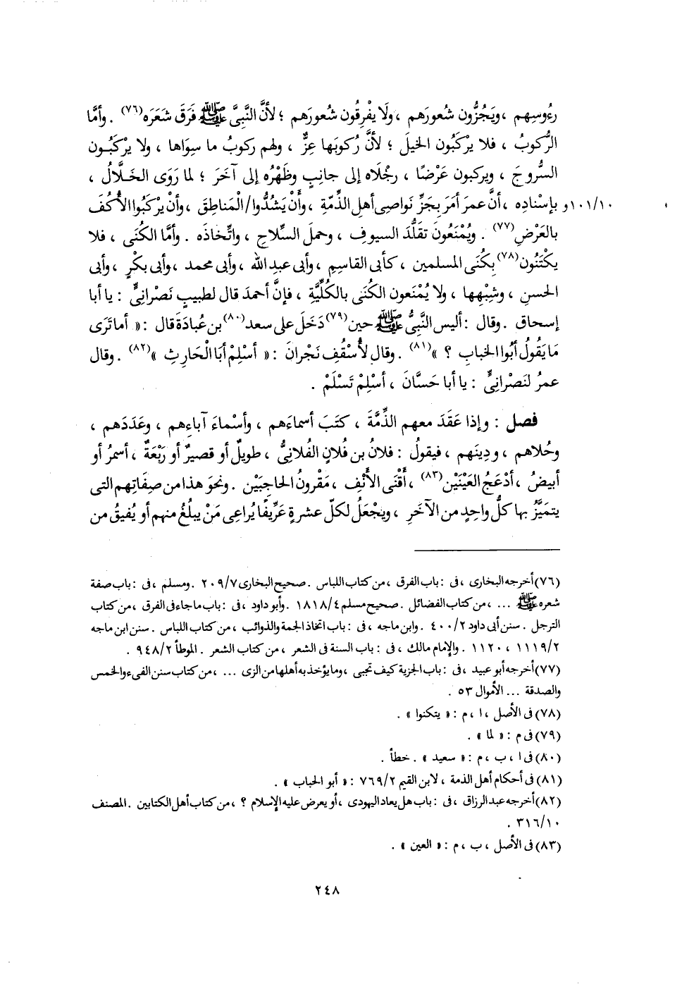 (٧٧) أخرجه أبو عبيد، فى: باب الجزية كيف تجبى، وما يؤخذ به أهلها من الزى. . .، من كتاب سنن الفىء والخمس والصدقة. . . الأموال ٥٣.
