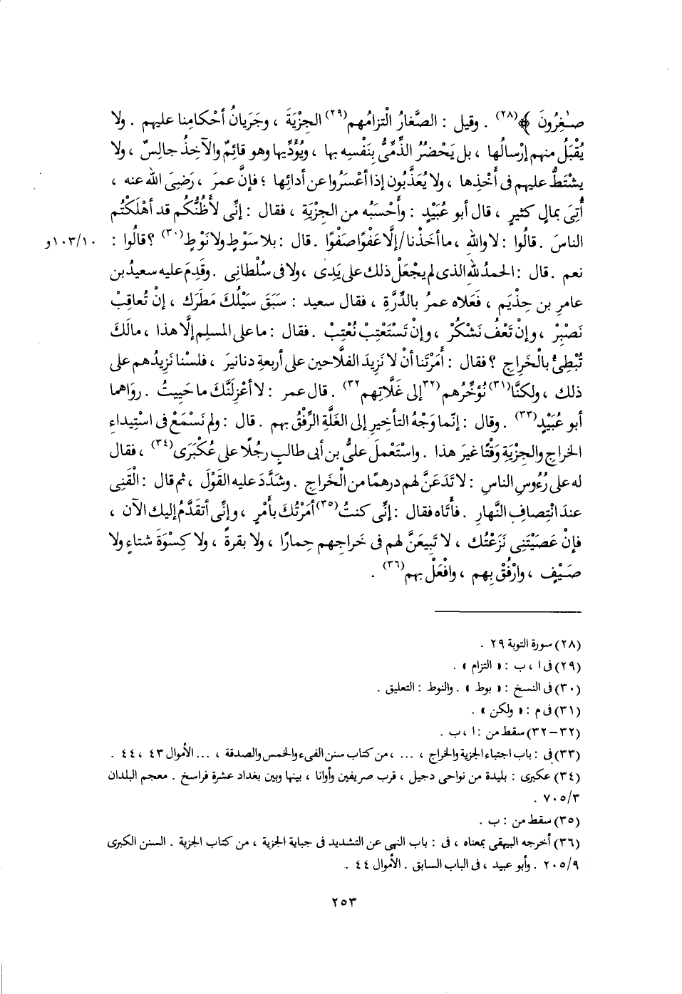 (٣٦) أخرجه البيهقى بمعناه، فى: باب النهى عن التشديد فى جباية الجزية، من كتاب الجزية. السنن الكبرى ٩/ ٢٠٥. وأبو عبيد، فى الباب السابق. الأموال ٤٤.