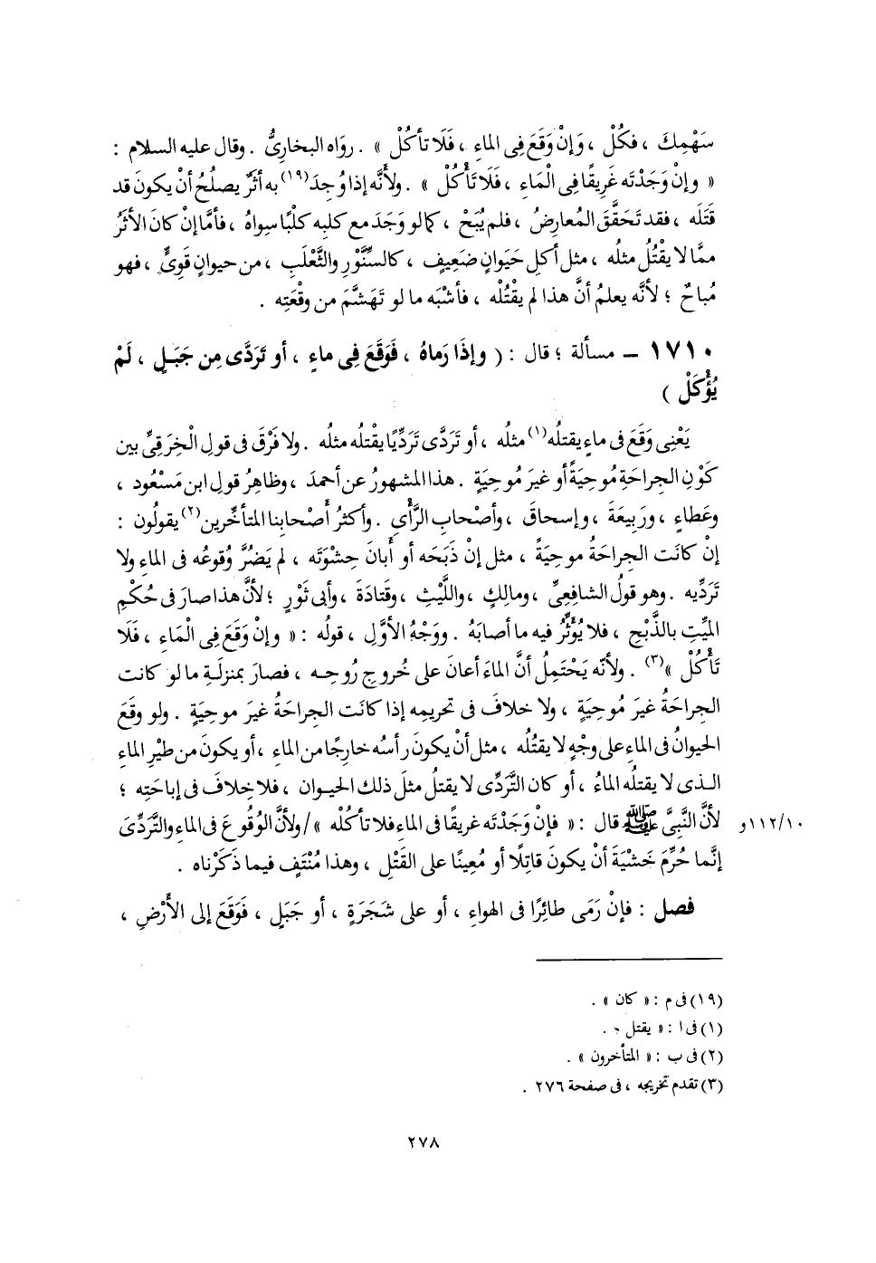 ١٧١٠ - مسألة؛ قال: (وإذَا رَماهُ، فَوَقَعَ فِى ماءٍ، أو تَرَدَّى مِن جَبَلٍ، لَمْ يُؤْكَلْ)